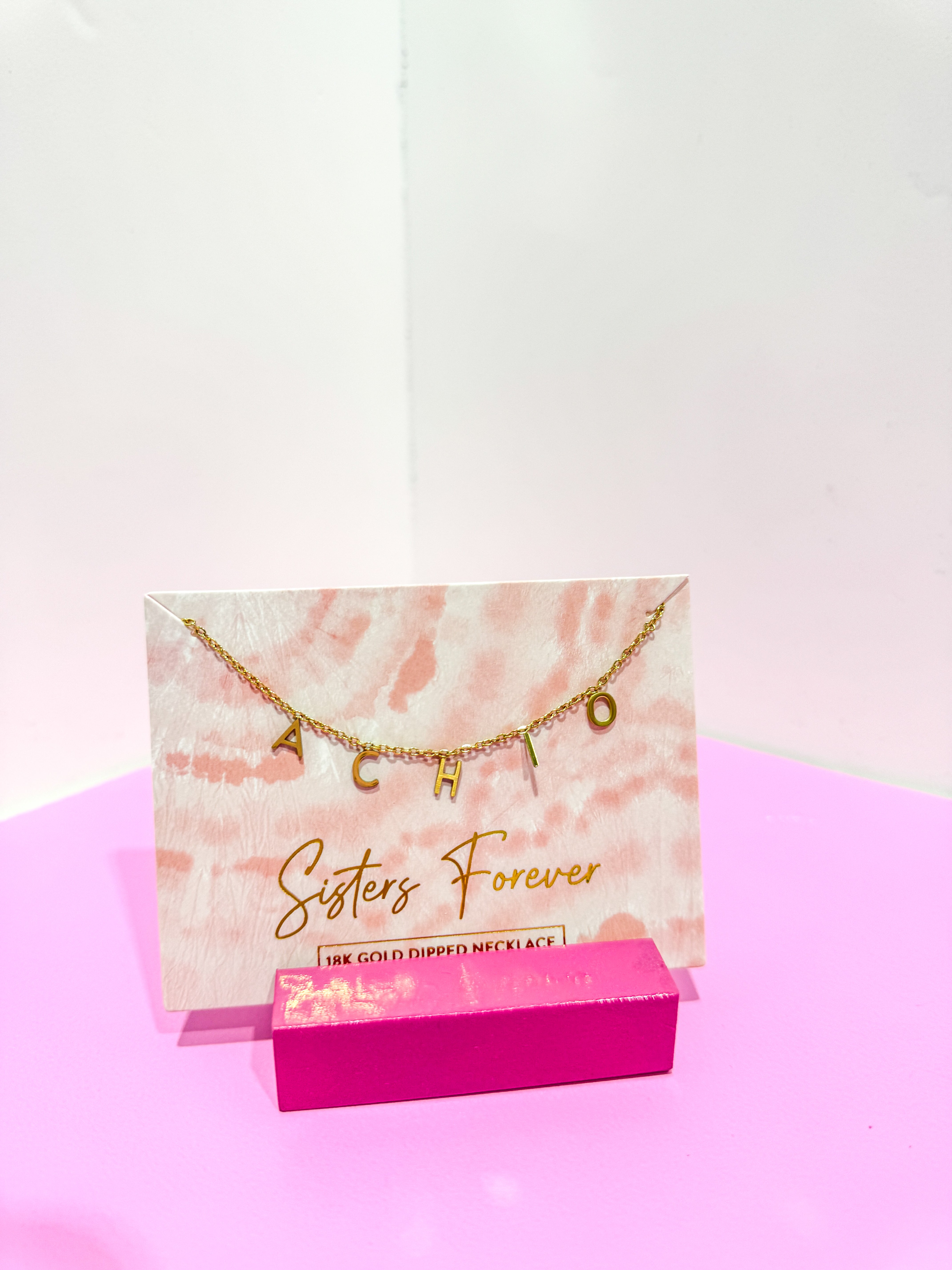 This jewelry features your sorority name plated in 18k gold. Give this necklace as a gift for your little or treat yourself!