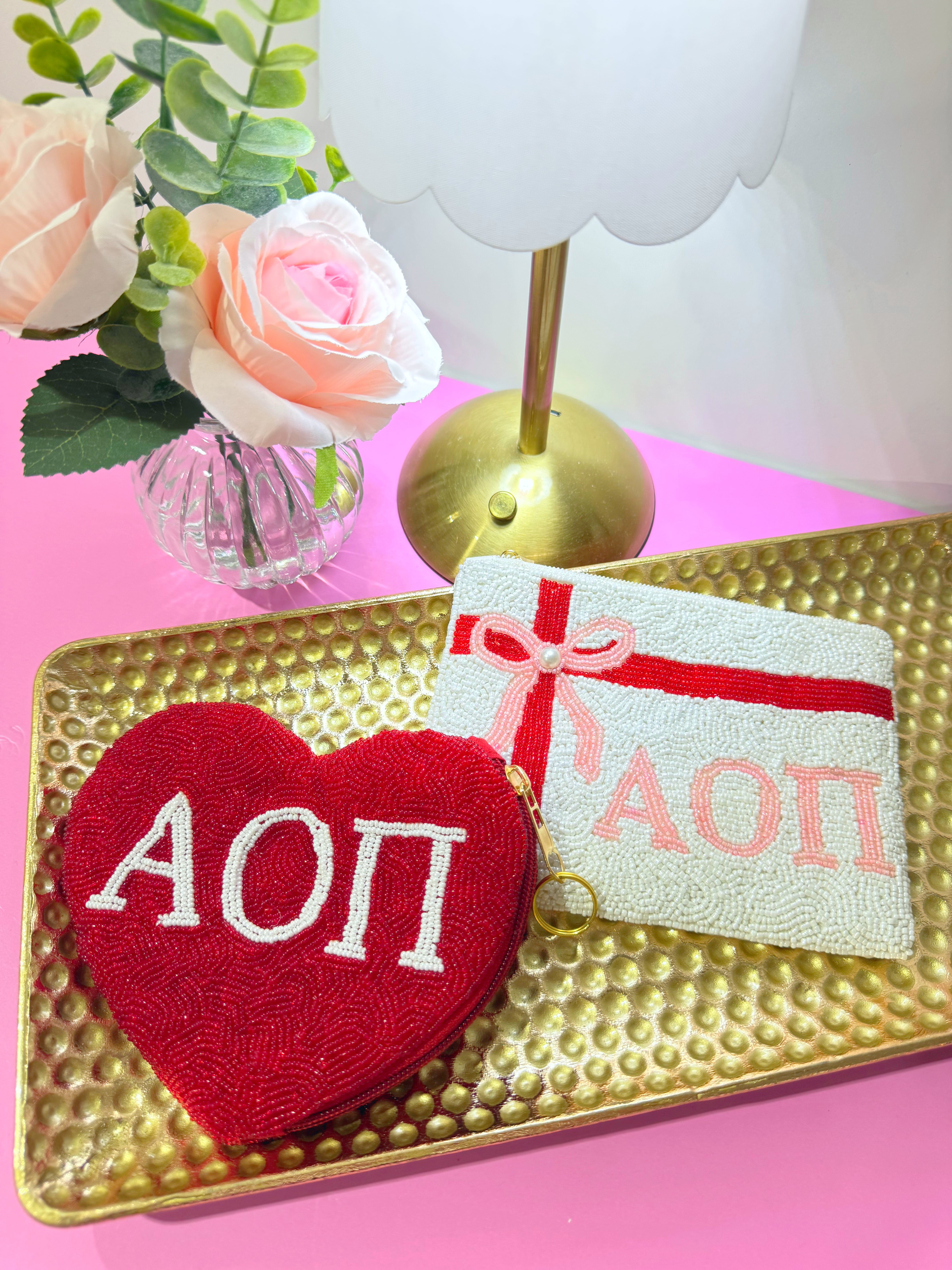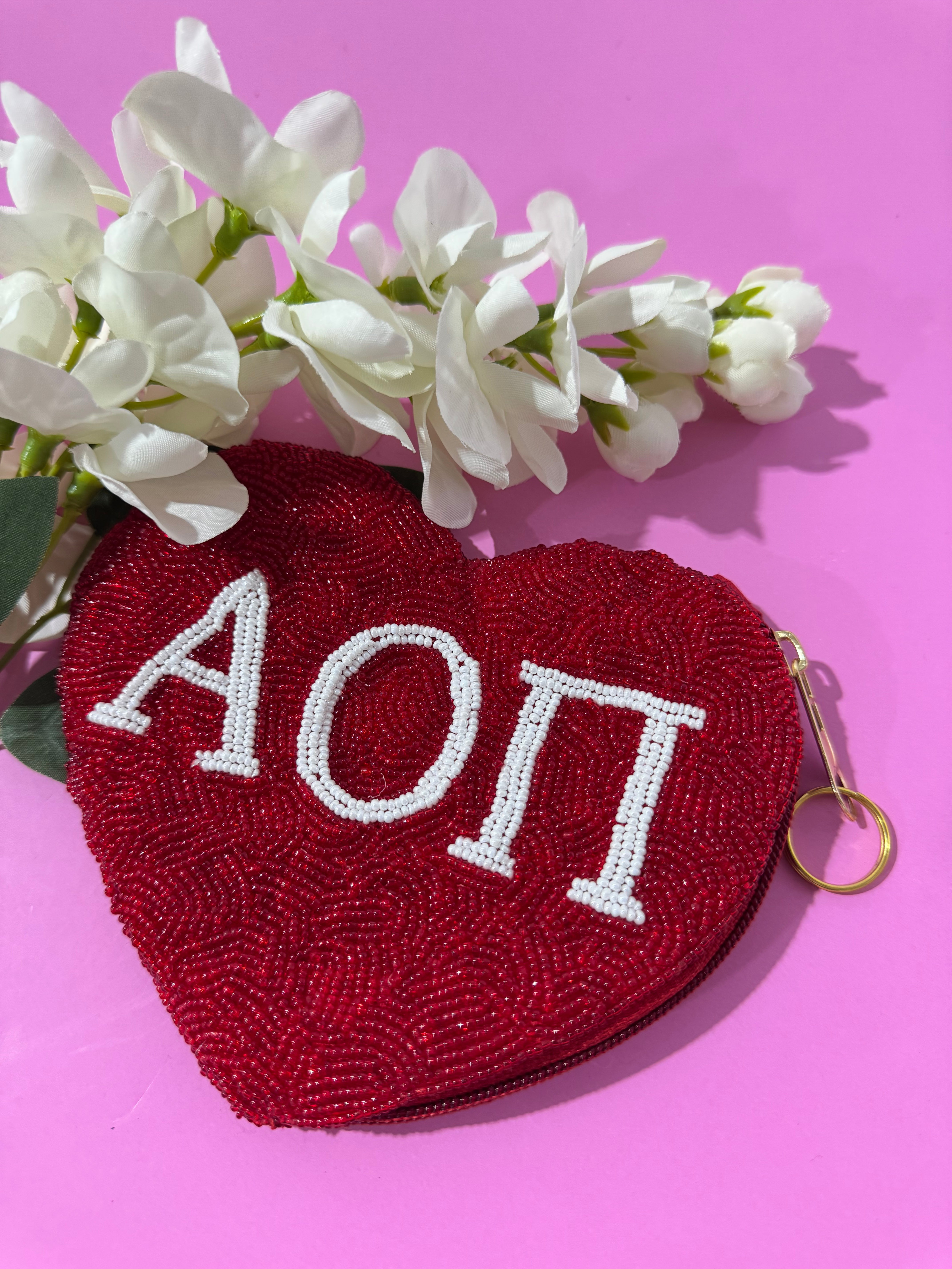 Alpha Omicron Pi Heart Beaded Coin Purse