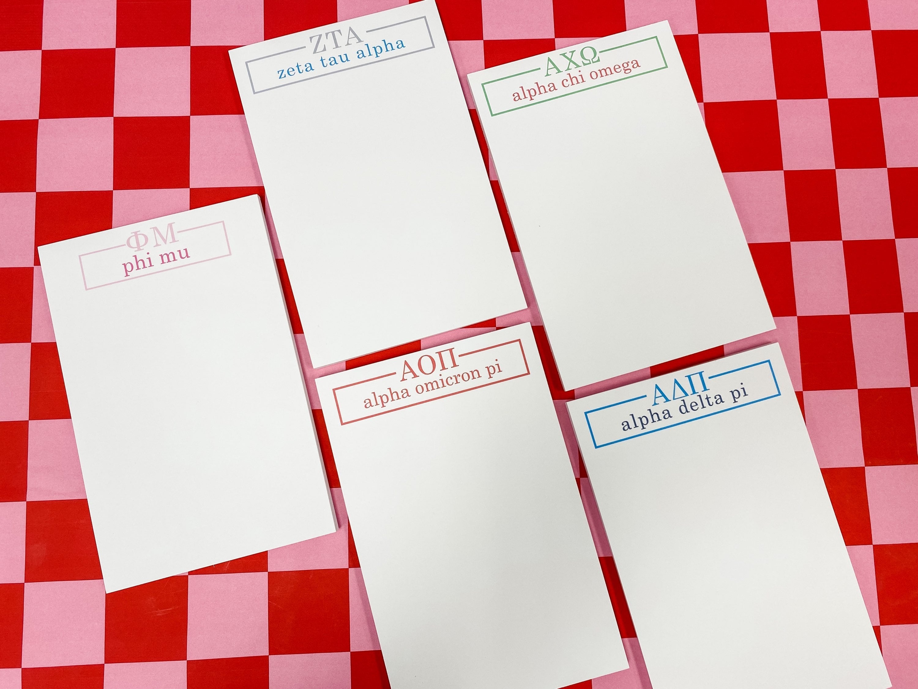 Perfectly packaged in a cellophane bag and tied with a bow, this 5.5” x 8.5” notebook (50 sheets per pad) makes the cutest gift!