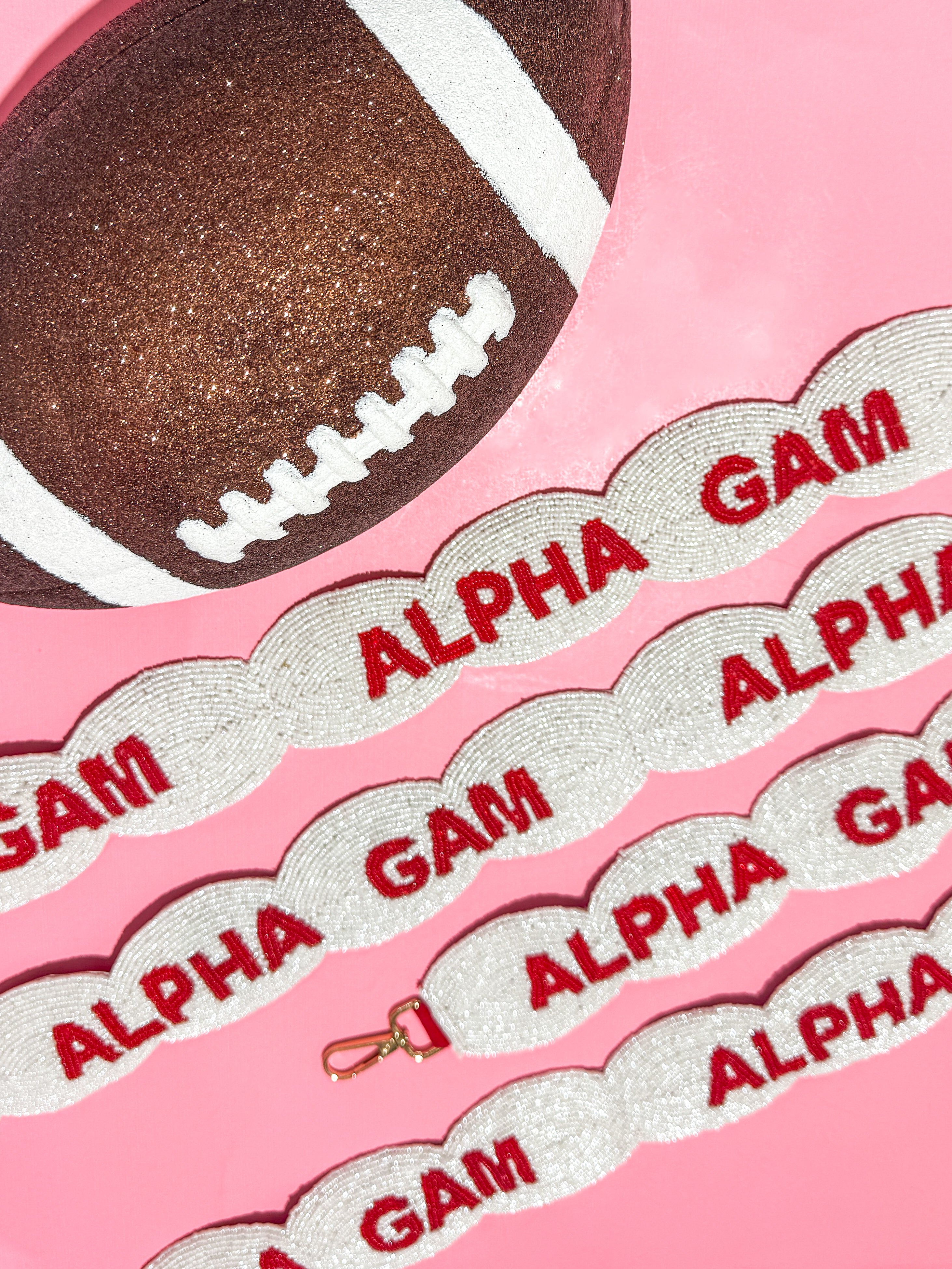 This is the perfect game day strap to add to your clear purse! OR hook it to a standard bag for a theme party or girls night! All straps have hooks at both ends and are hand-beaded for the best quality.