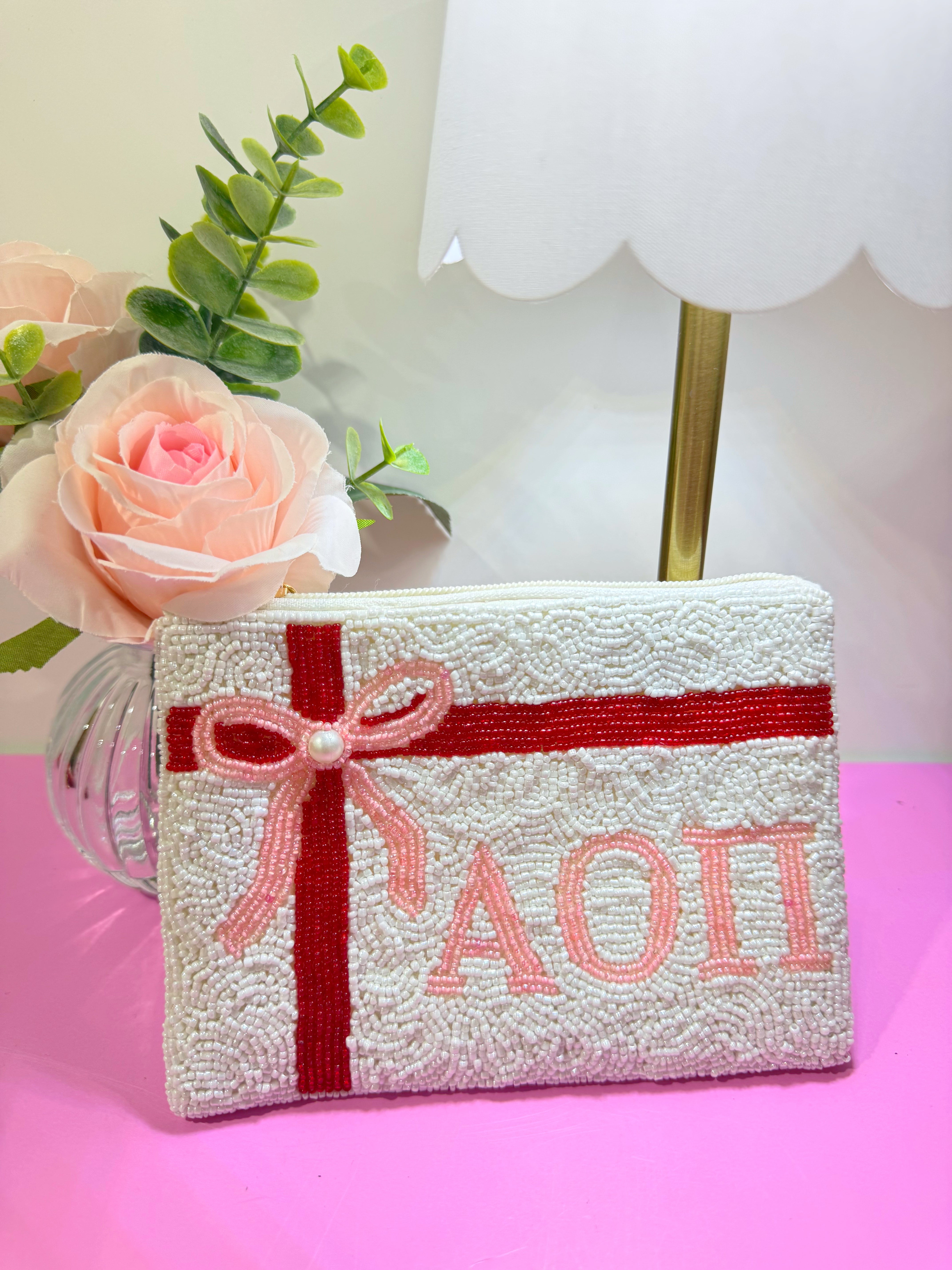 Alpha Omicron Pi Beaded Bow Coin Purse