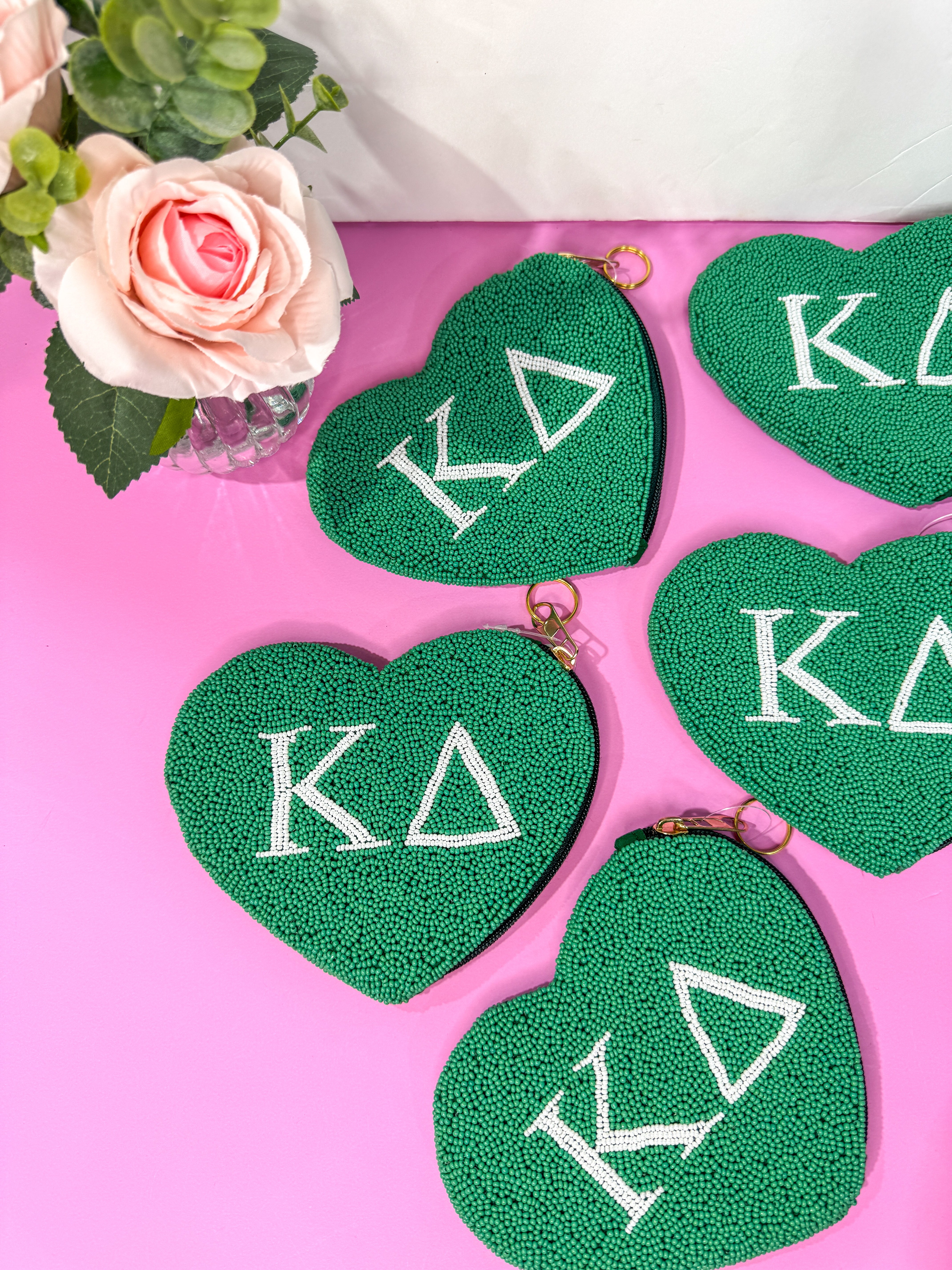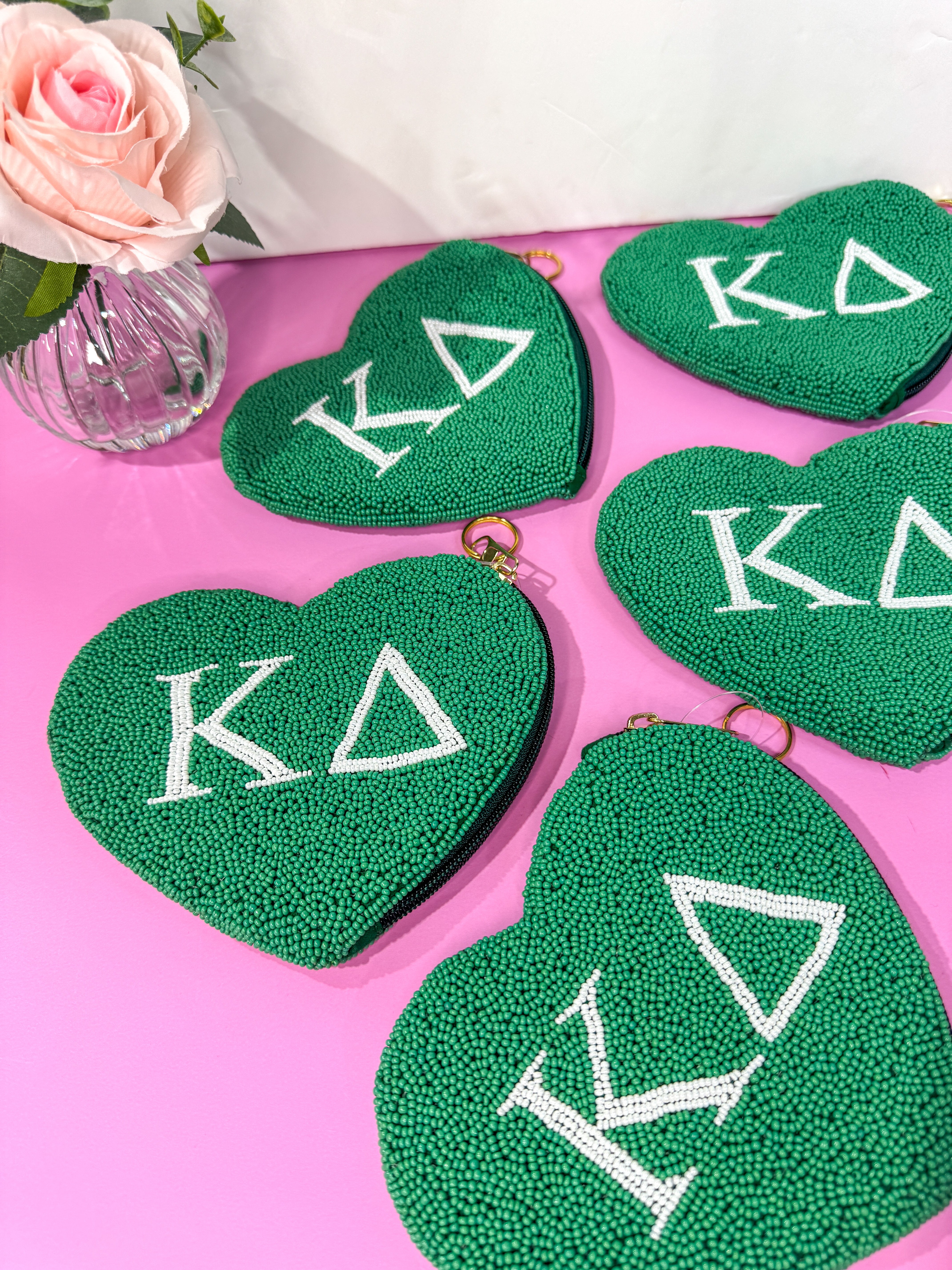 This custom heart-shaped beaded coin purse is a must-have gift for any sorority member! Officially licensed and a new release for spring 2025!