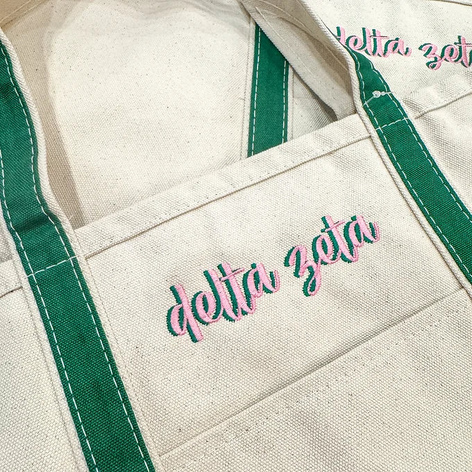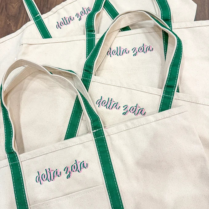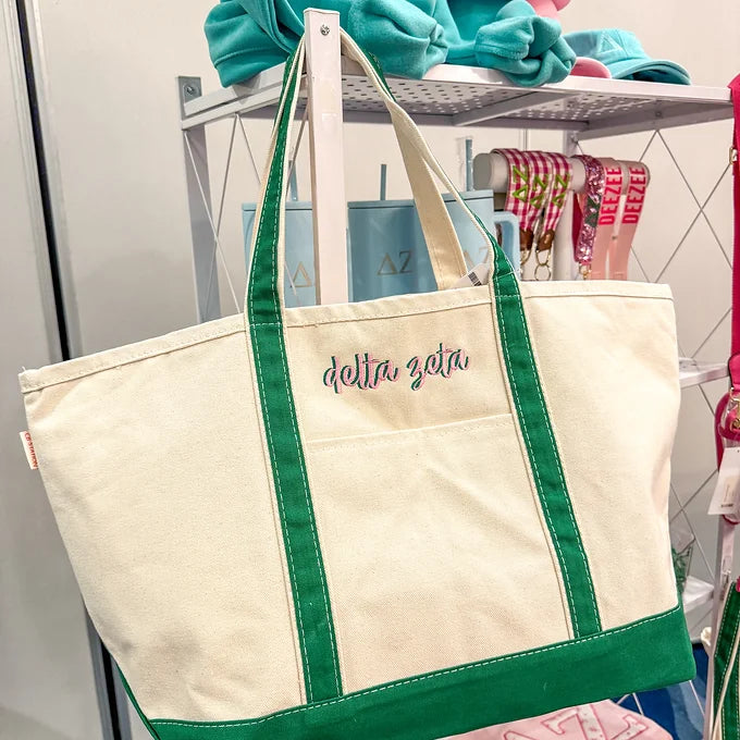 With a timeless design, top zip, and a handy outer pocket for quick access to items like a phone, this is not just a beach bag – it's an all-in-one solution! Take it to class, chapter meetings, or a weekend trip!