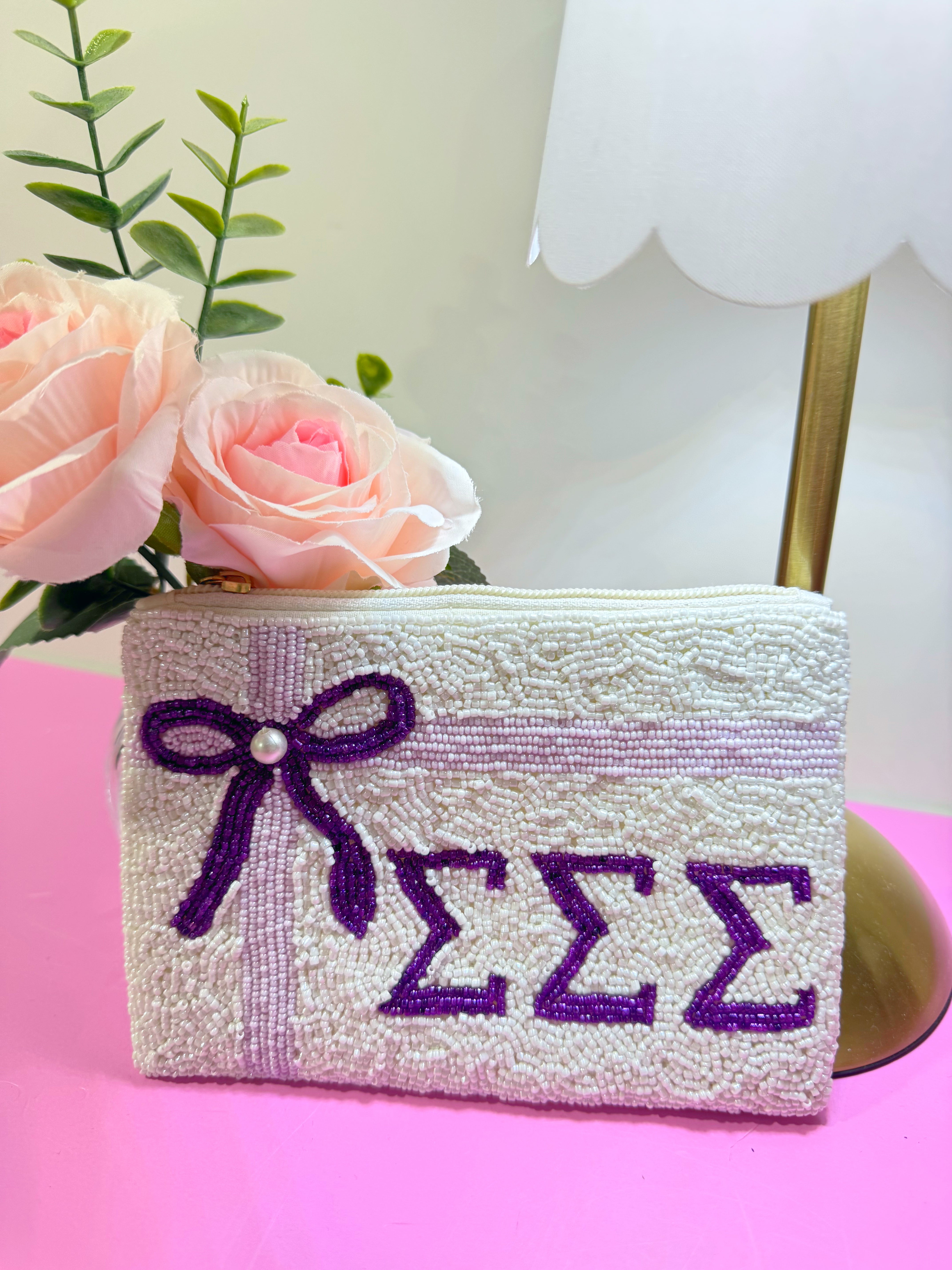 3. Sigma Sigma Sigma Beaded Bow Coin Purse