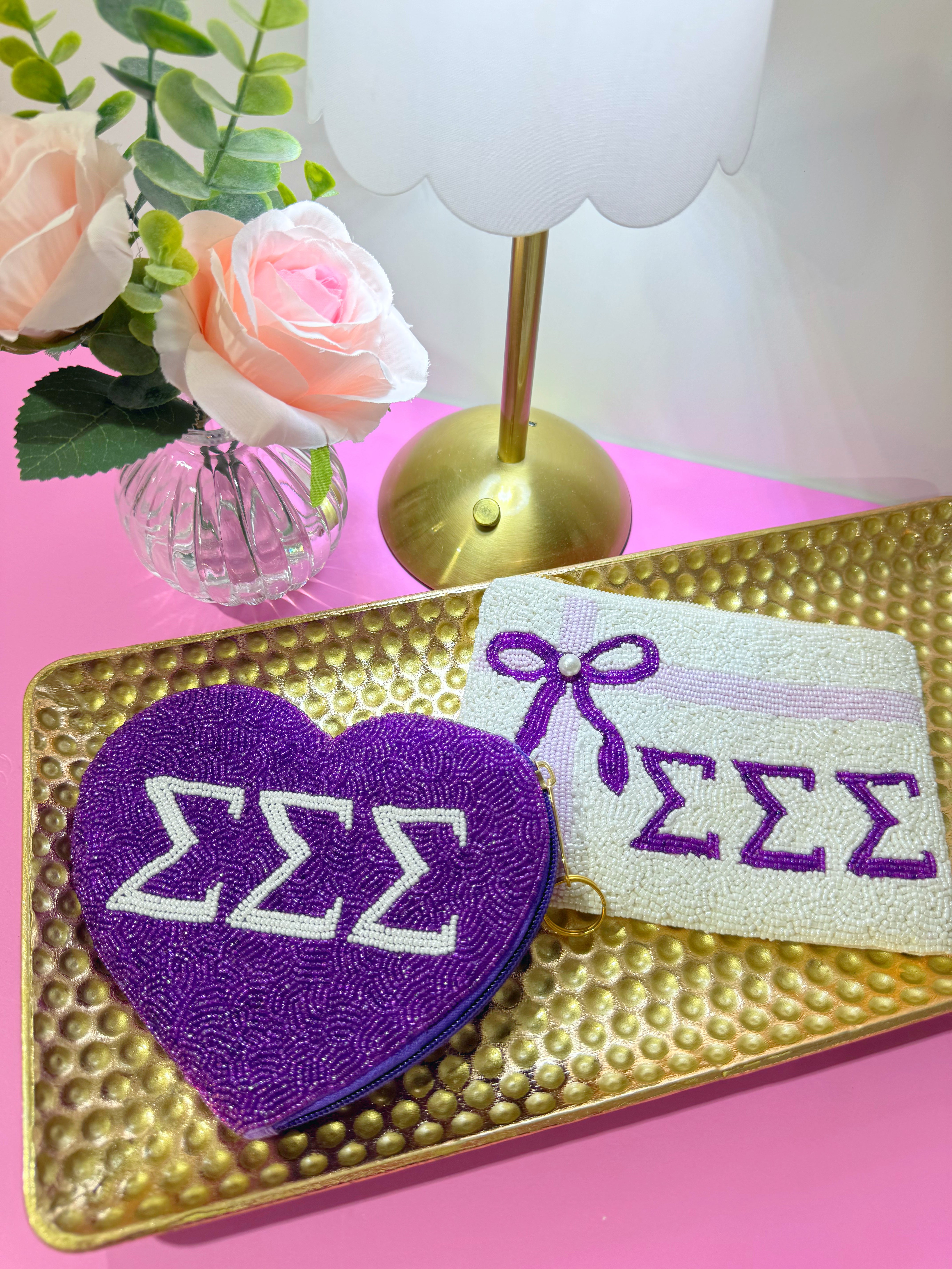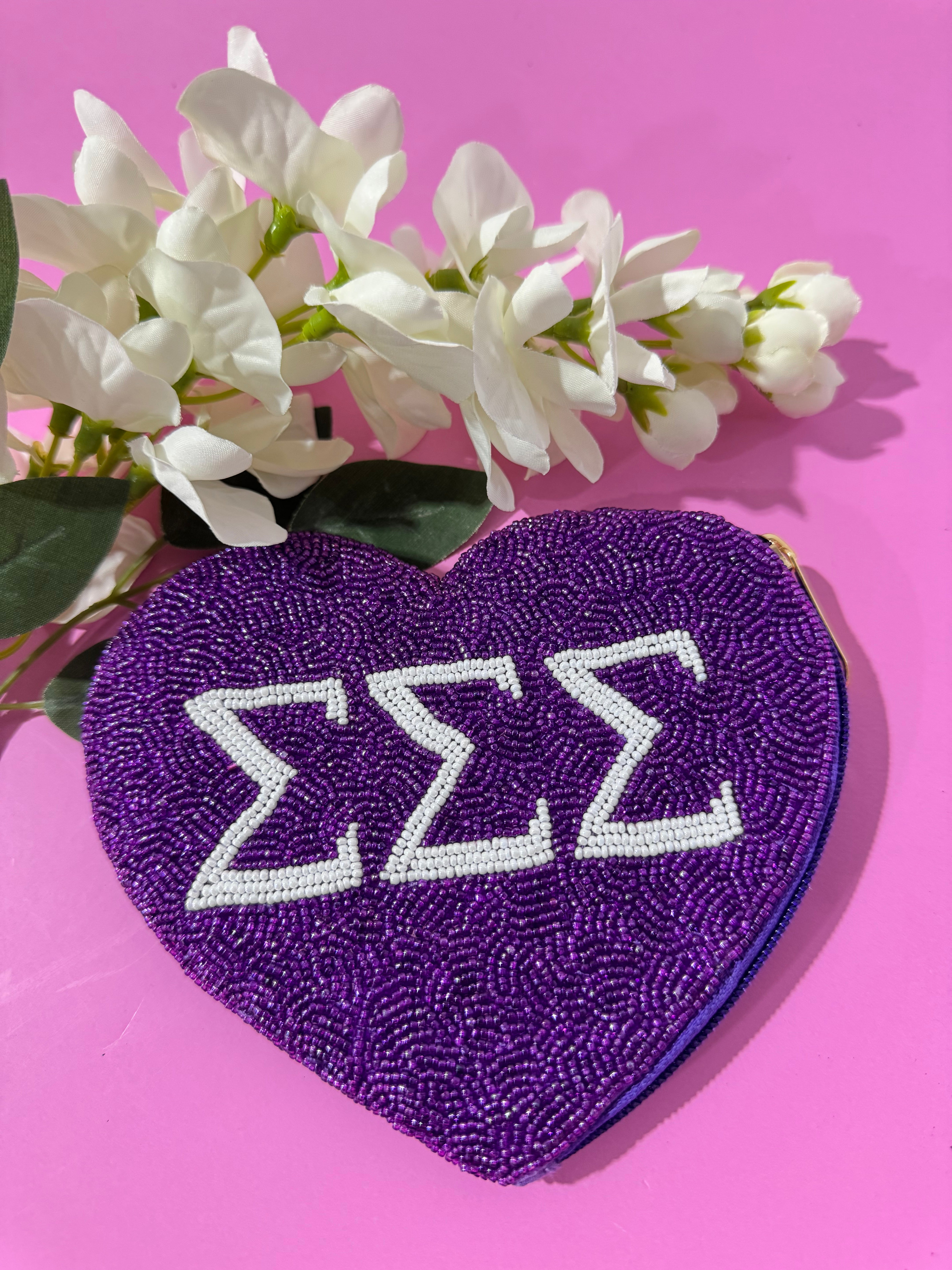 Sigma Sigma Sigma Heart Beaded Coin Purse