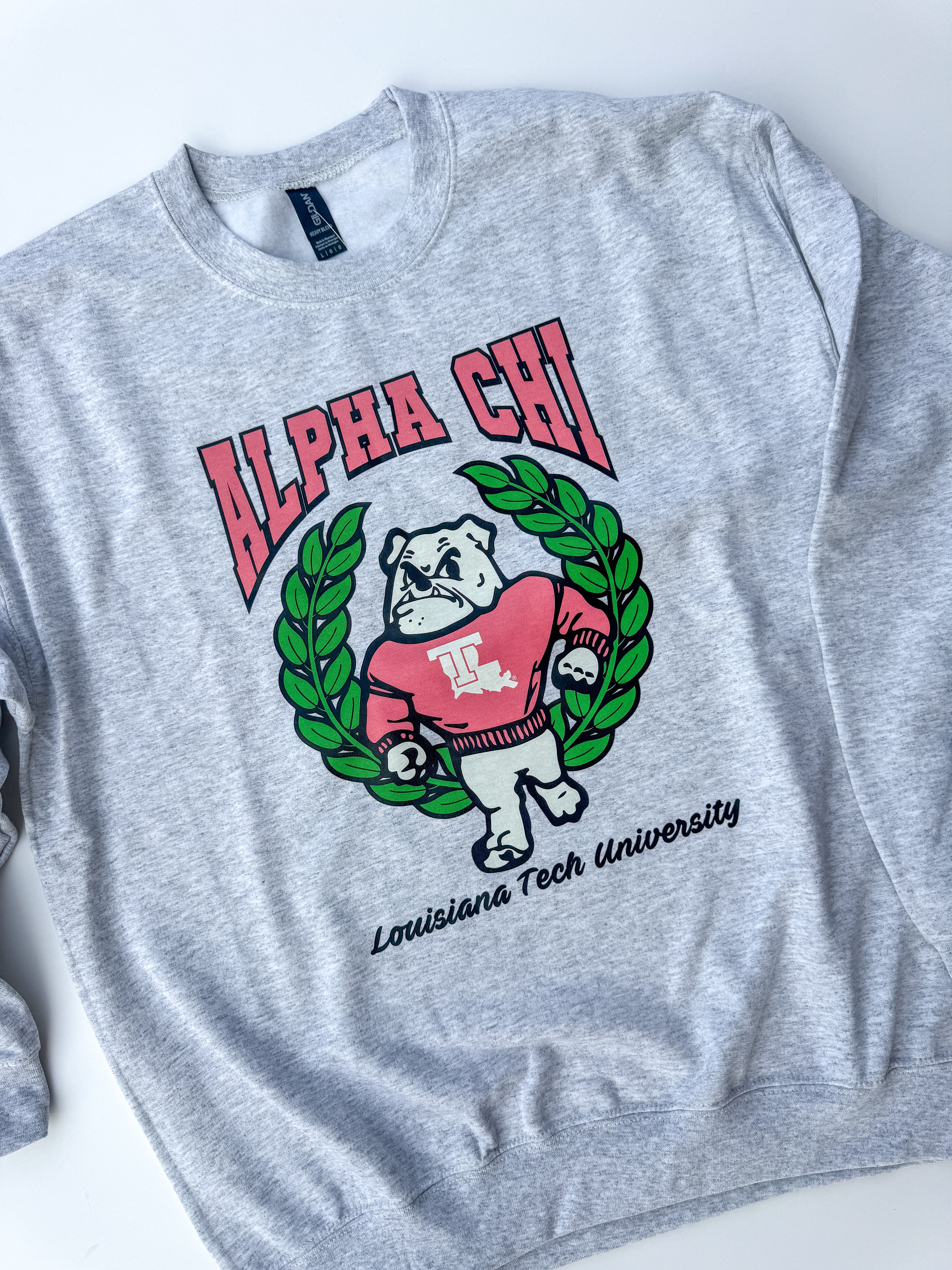 How 'bout them dogs! Alpha Chi loves the Louisiana Tech bulldogs and shows the love with this custom-designed crewneck sweatshirt.