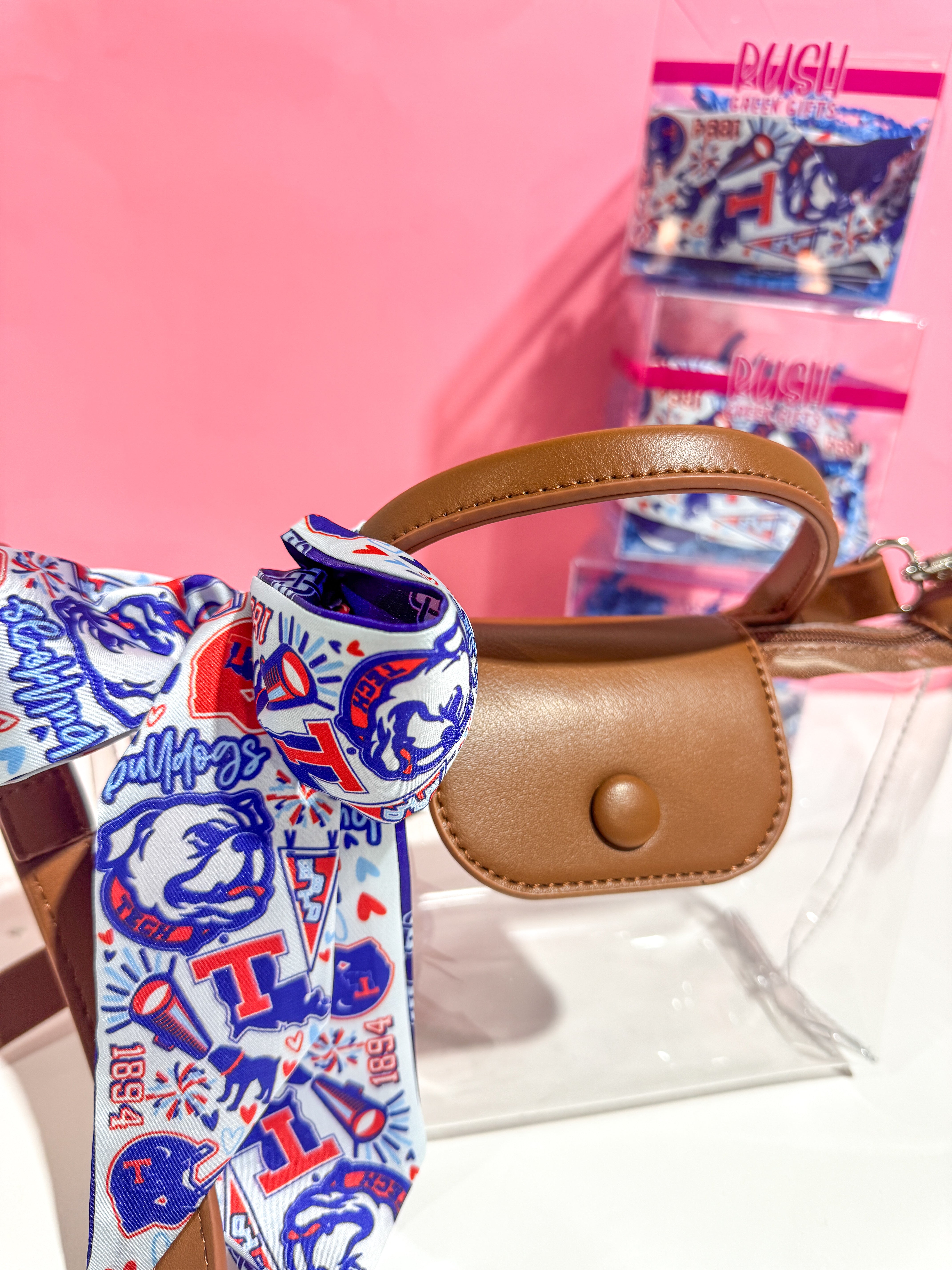 It's the accessory of the season! We designed and manufactured this silk skinny scarf or "Silky." It's the perfect addition to your outfit for any occasion! Tie it to your gameday bag or boots... tie it in your hair or on your belt loop. Check out both designs: both sorority AND collegiate!