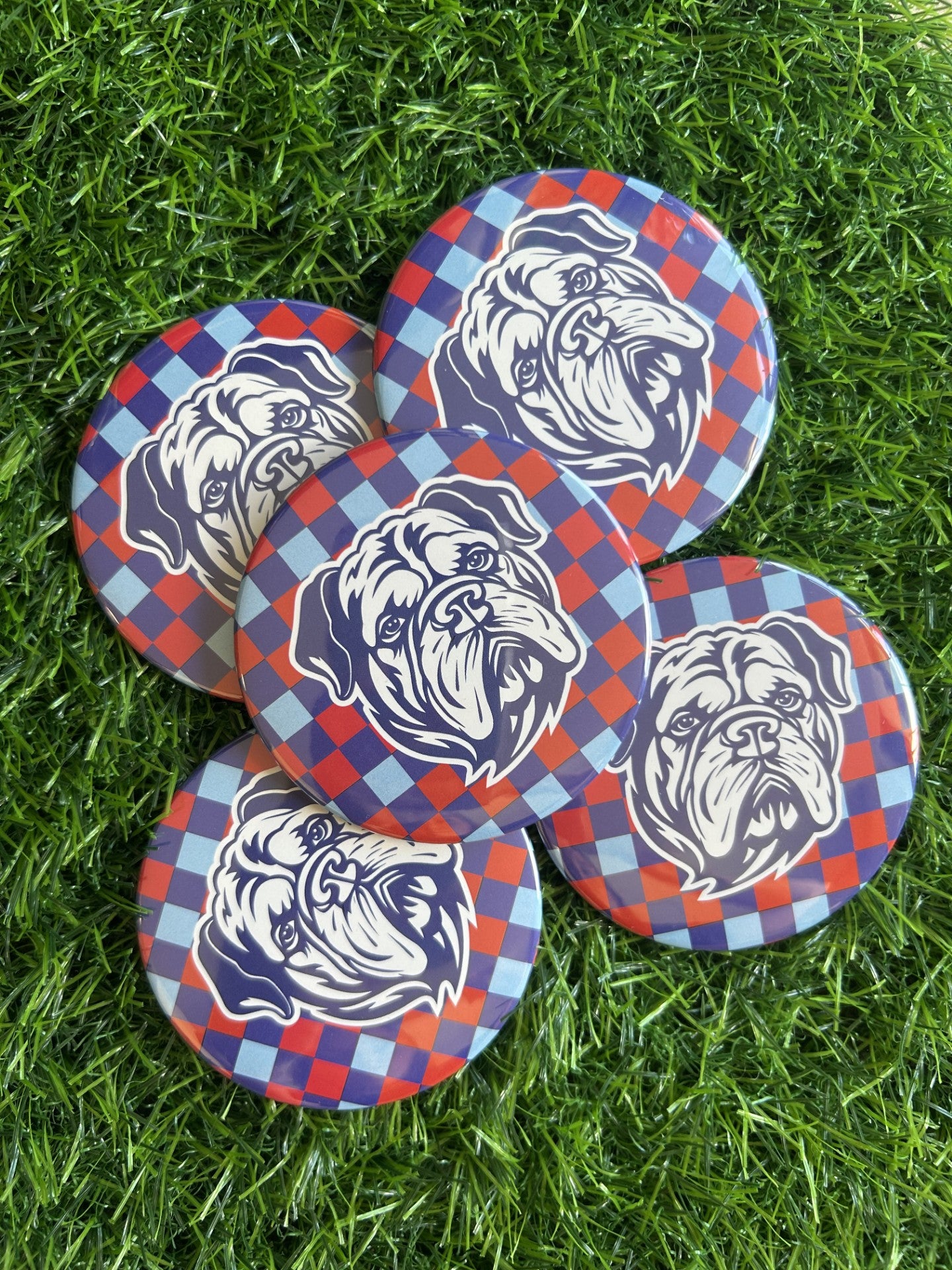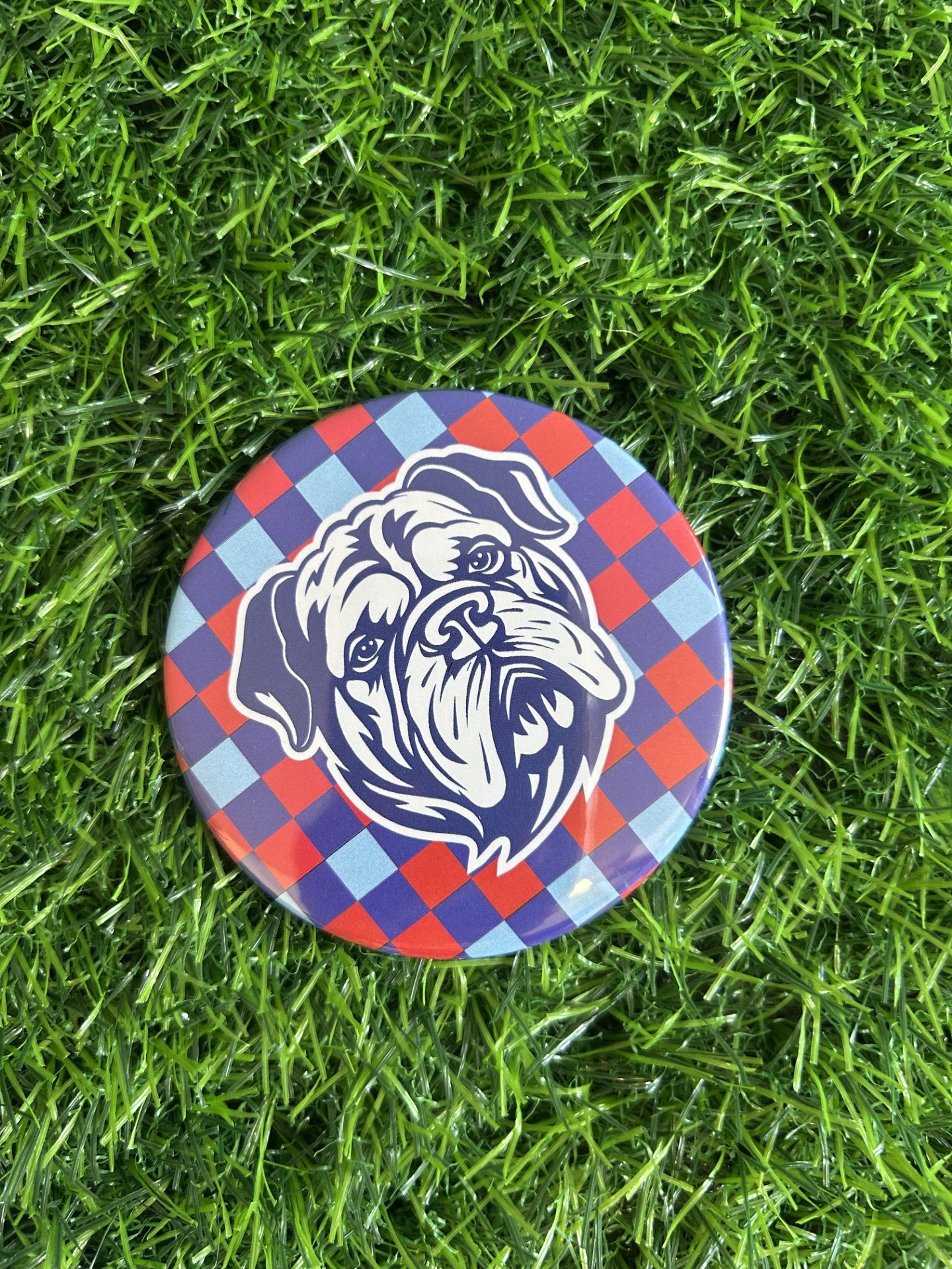 Game day ready with this bold little button - show your Louisiana Tech Bulldog pride in style with our red and royal blue checkered game day button!