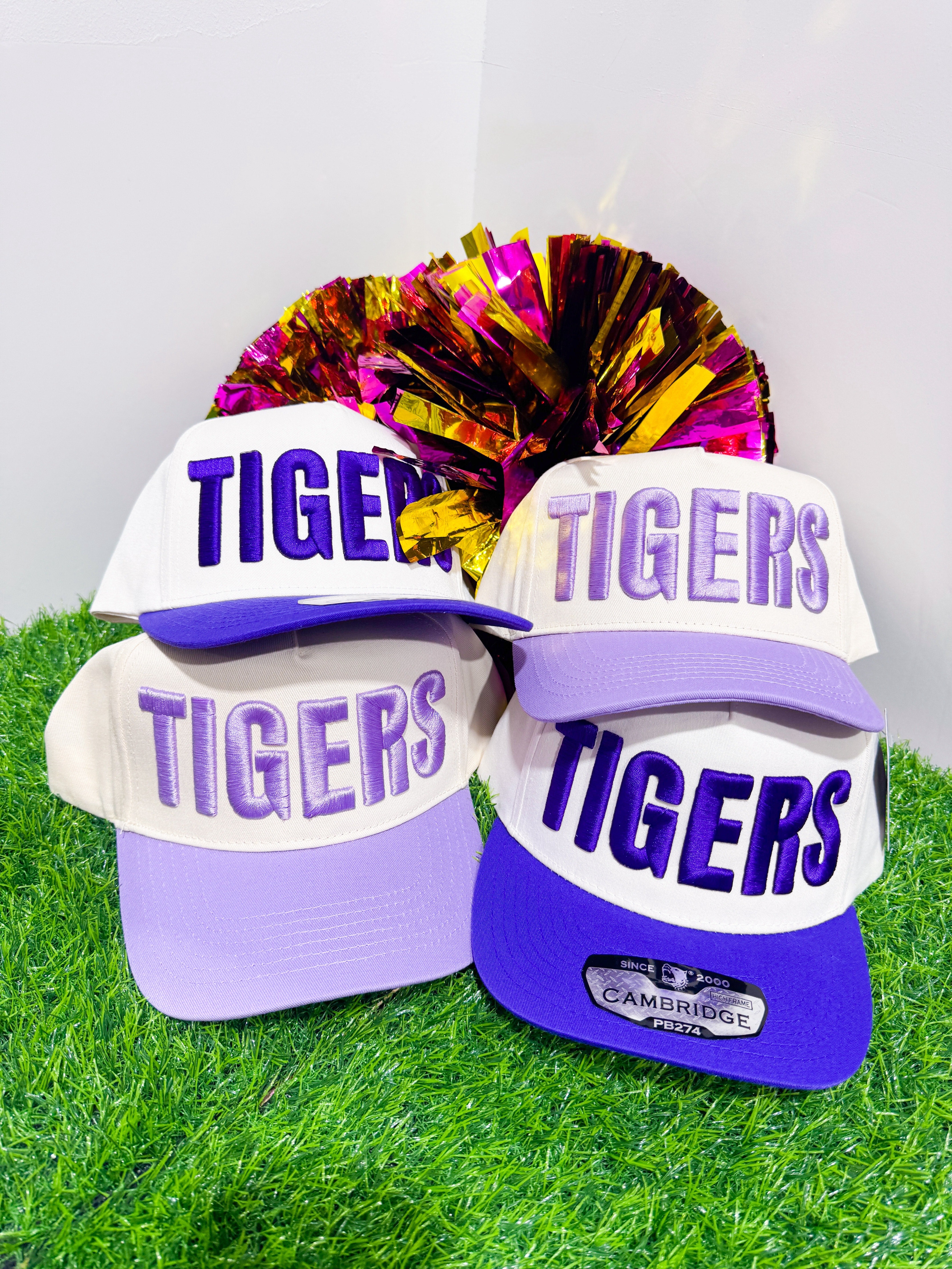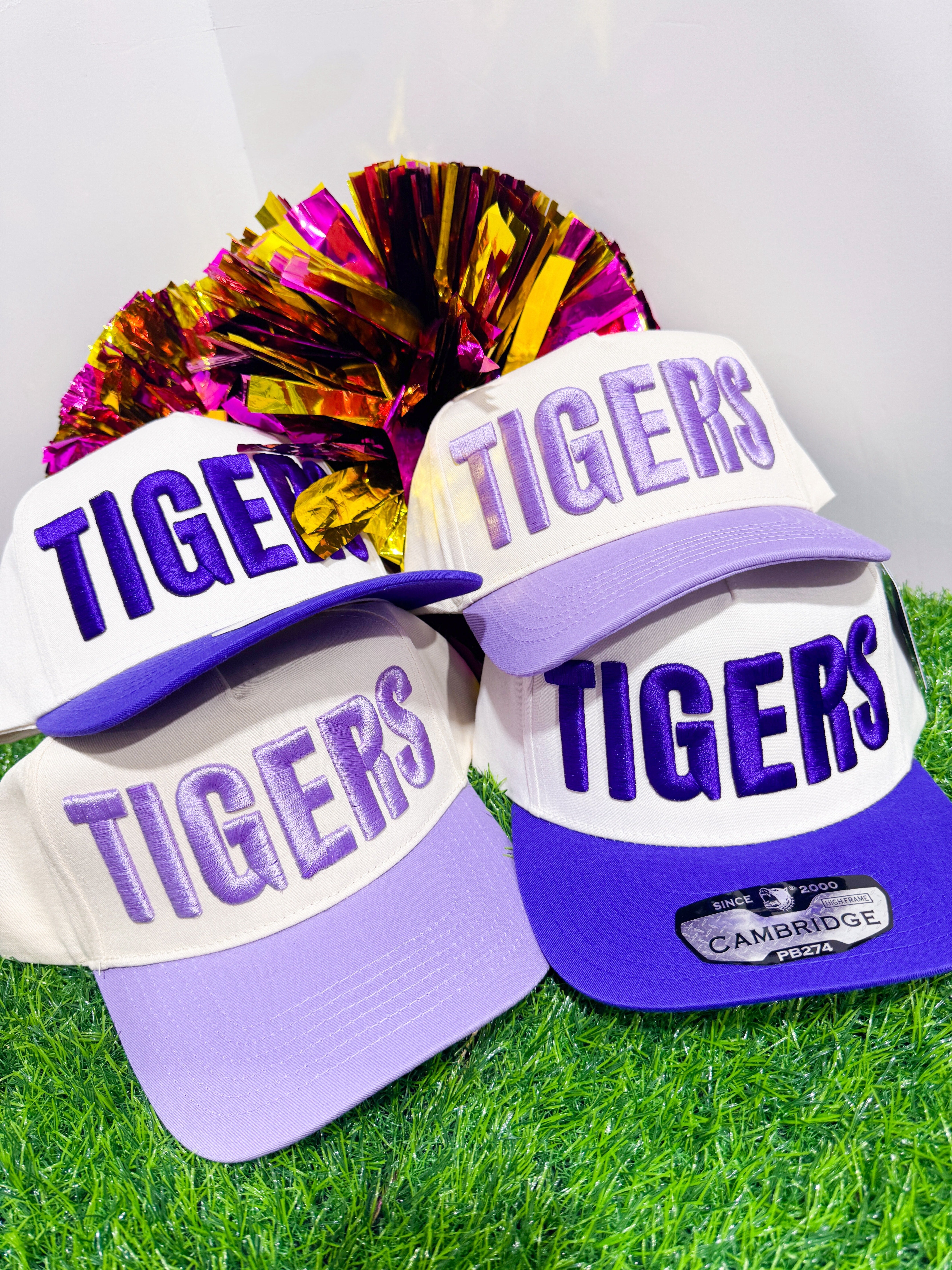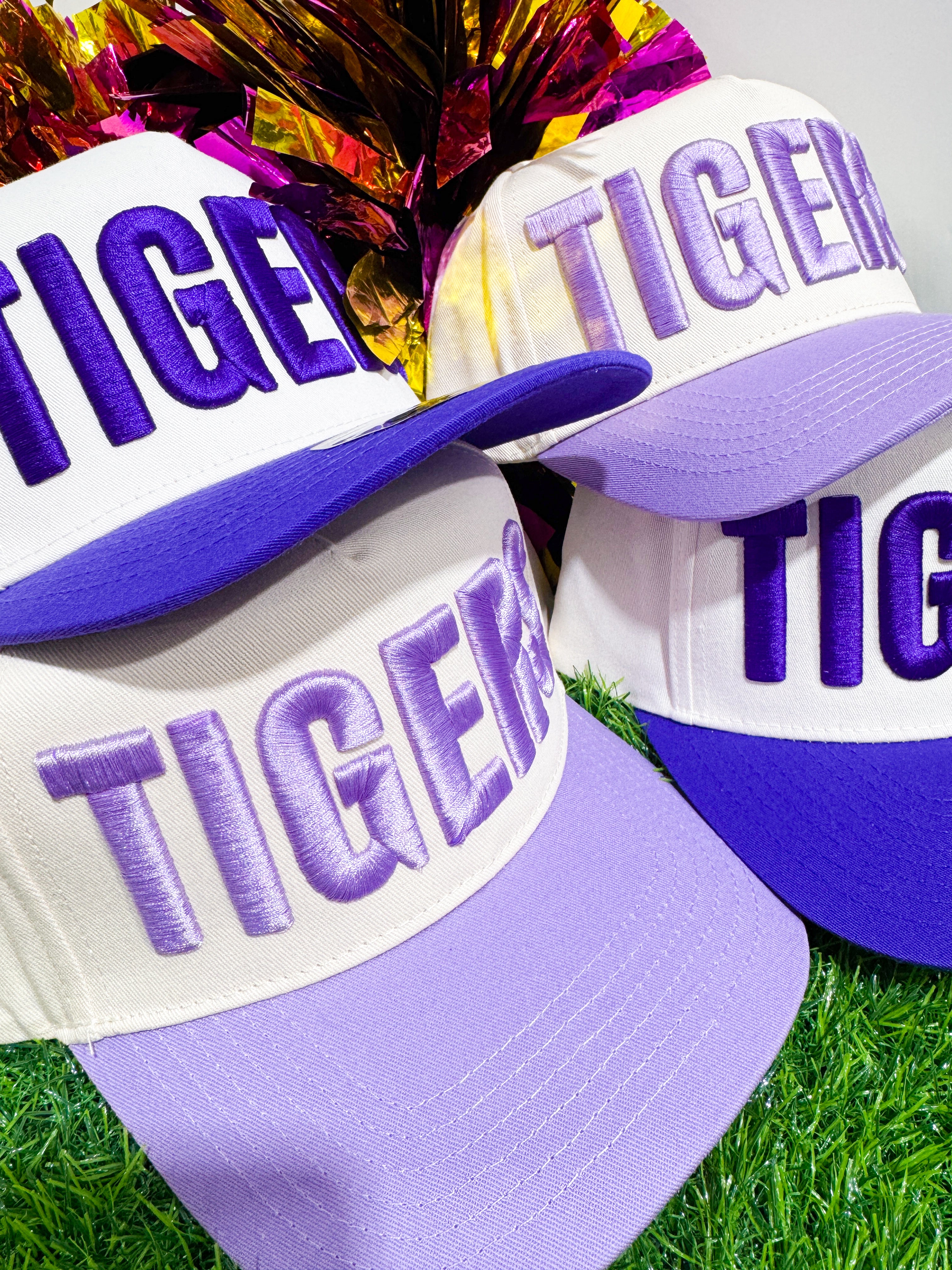 Show some love for the TIGERS with our newest release. This embroidered canvas hat is the hot, new style for 2025 with 3D embroidery. Available in lavender or dark purple.
