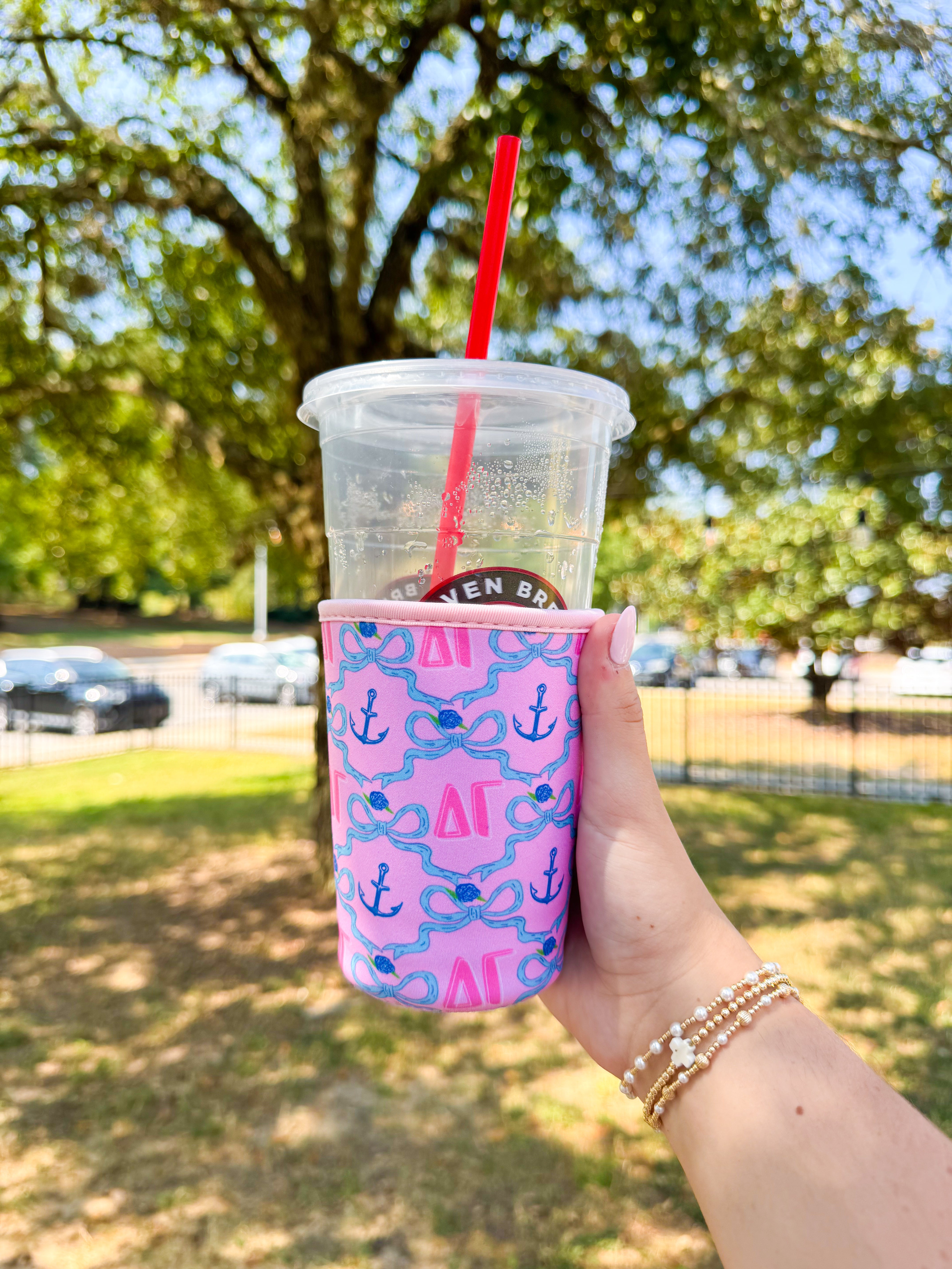 Hot off the press!! Keep iced coffee and energy teas cold with our custom drink sleeve! This size holds medium or large drinks perfectly!