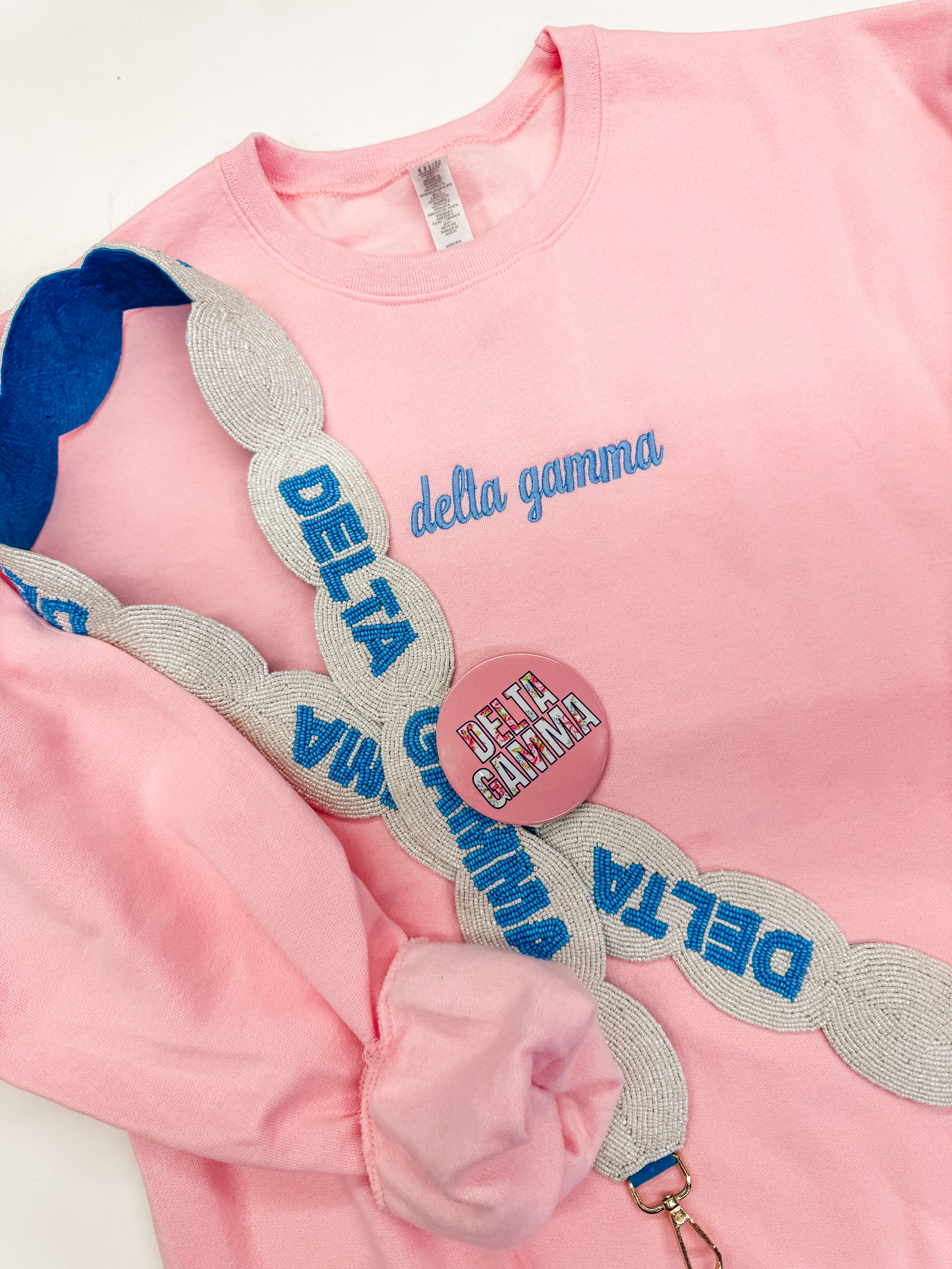 Traditional, classy, and embroidered - the perfect combination! This true-to-size crewneck sweatshirt is a must for every sorority girl's closet!