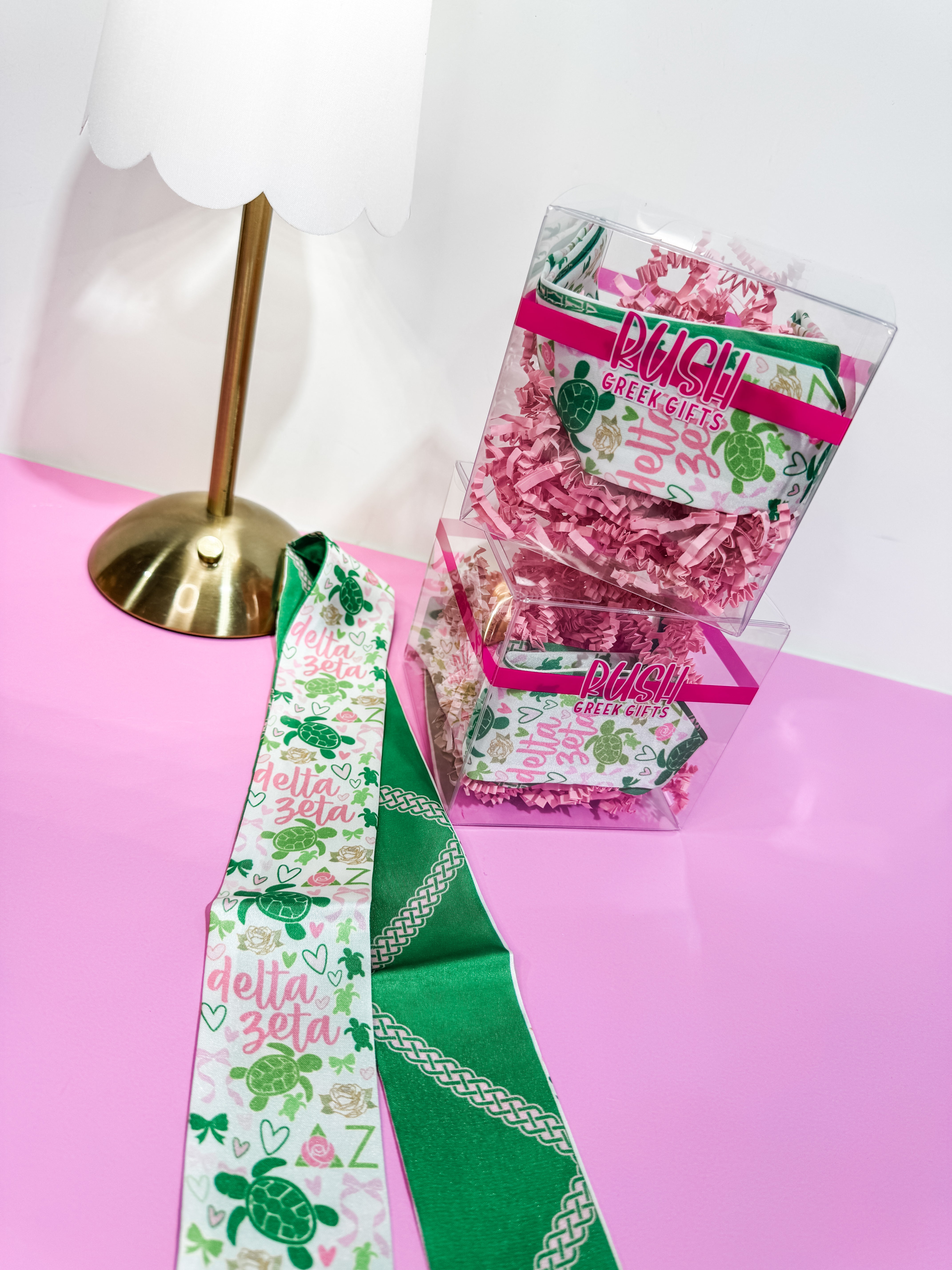 It's the accessory of the season! We designed and manufactured this silk skinny scarf or "Silky." It's the perfect addition to your outfit for any occasion! Tie it to your gameday bag or boots... tie it in your hair or on your belt loop. Check out both designs: both sorority AND collegiate!