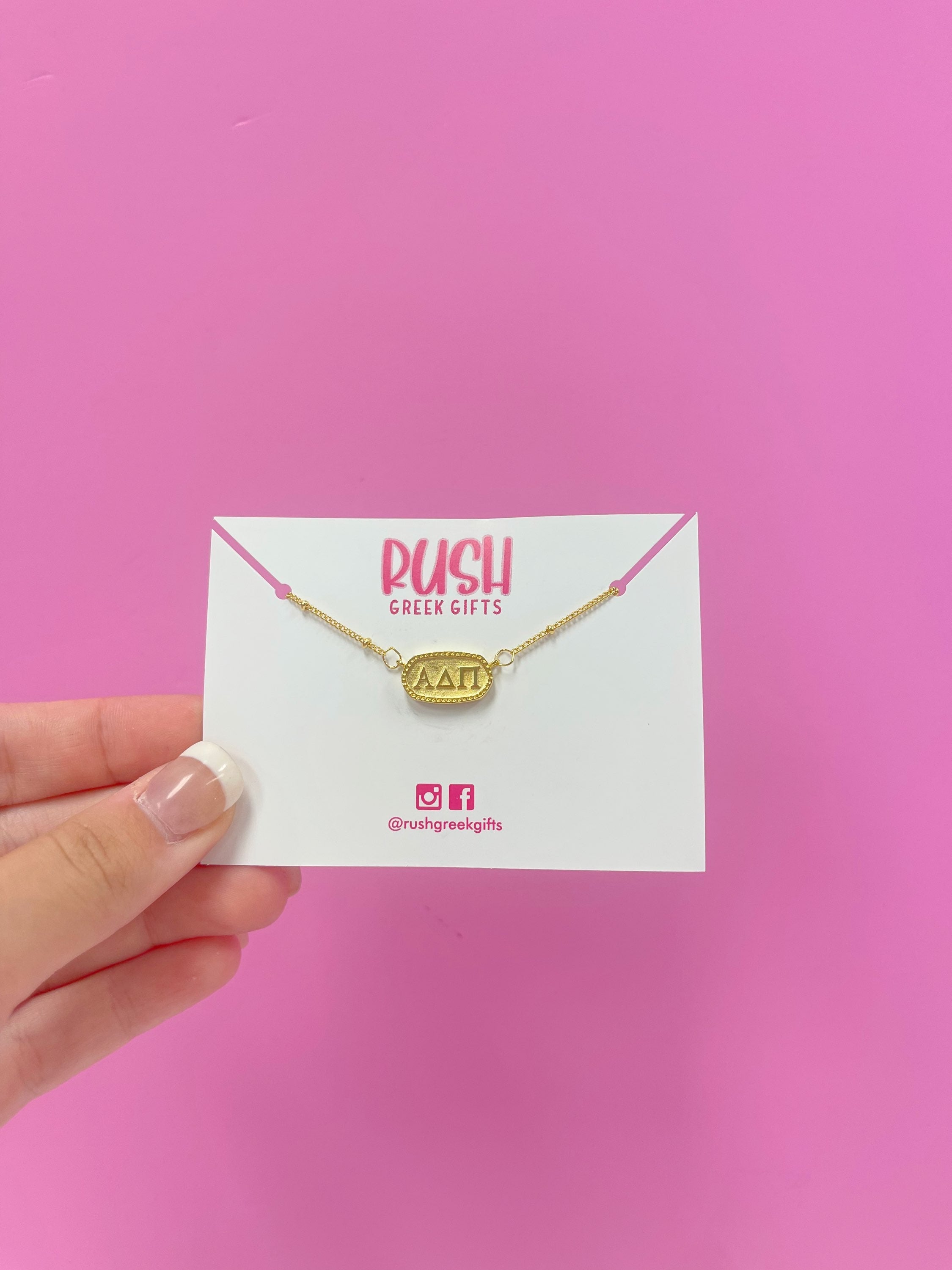 Alpha Delta Pi Gold Oval Pendant Necklace