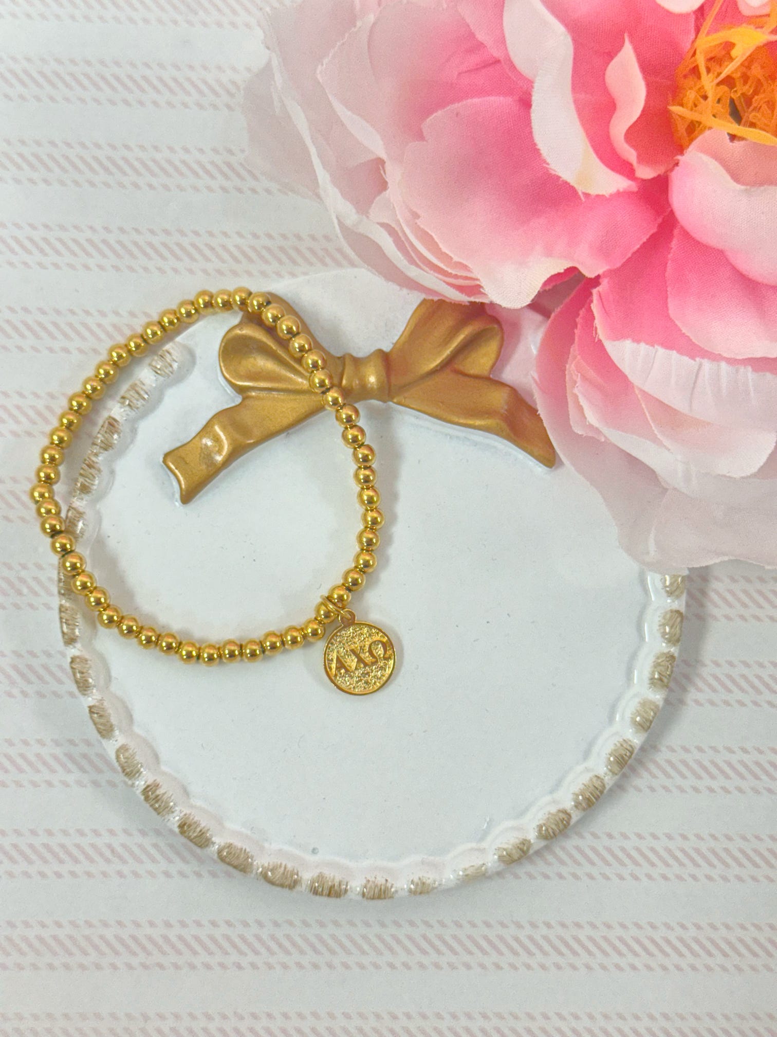 Alpha Omicron Pi Gold Bead Bracelet