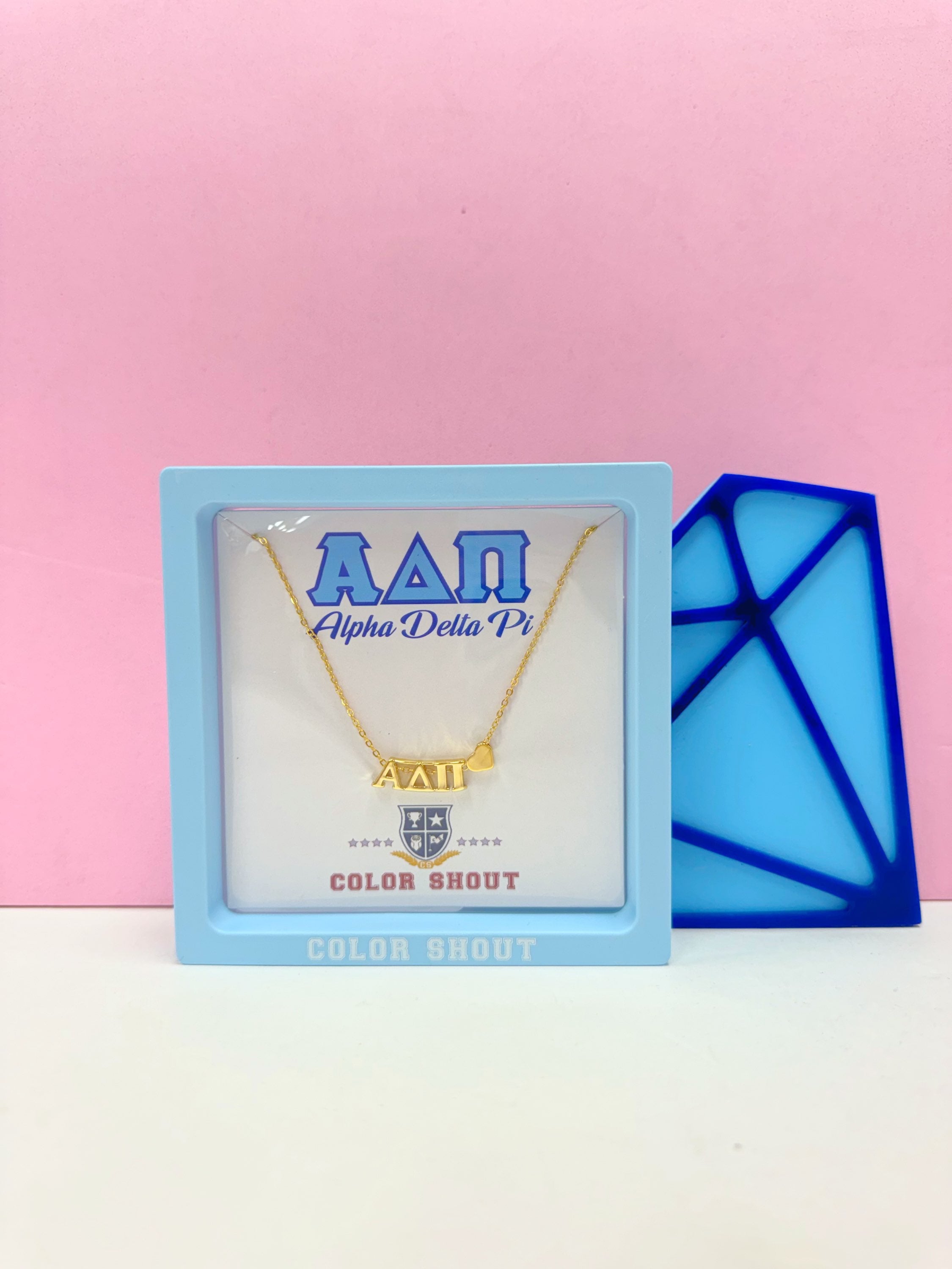 Alpha Delta Pi Greek Letters Gold Heart Necklace