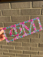 Colorful patterned acrylic in size 8" x 3." Perfect for a bookshelf or desk decor!