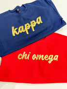 Take your favorite puff print and make it GOLD METALLIC! Yes, Rush has it and you will love it! Custom designed and created by Rush Greek Gifts, this crewneck sweatshirt will be a campus show stopper!