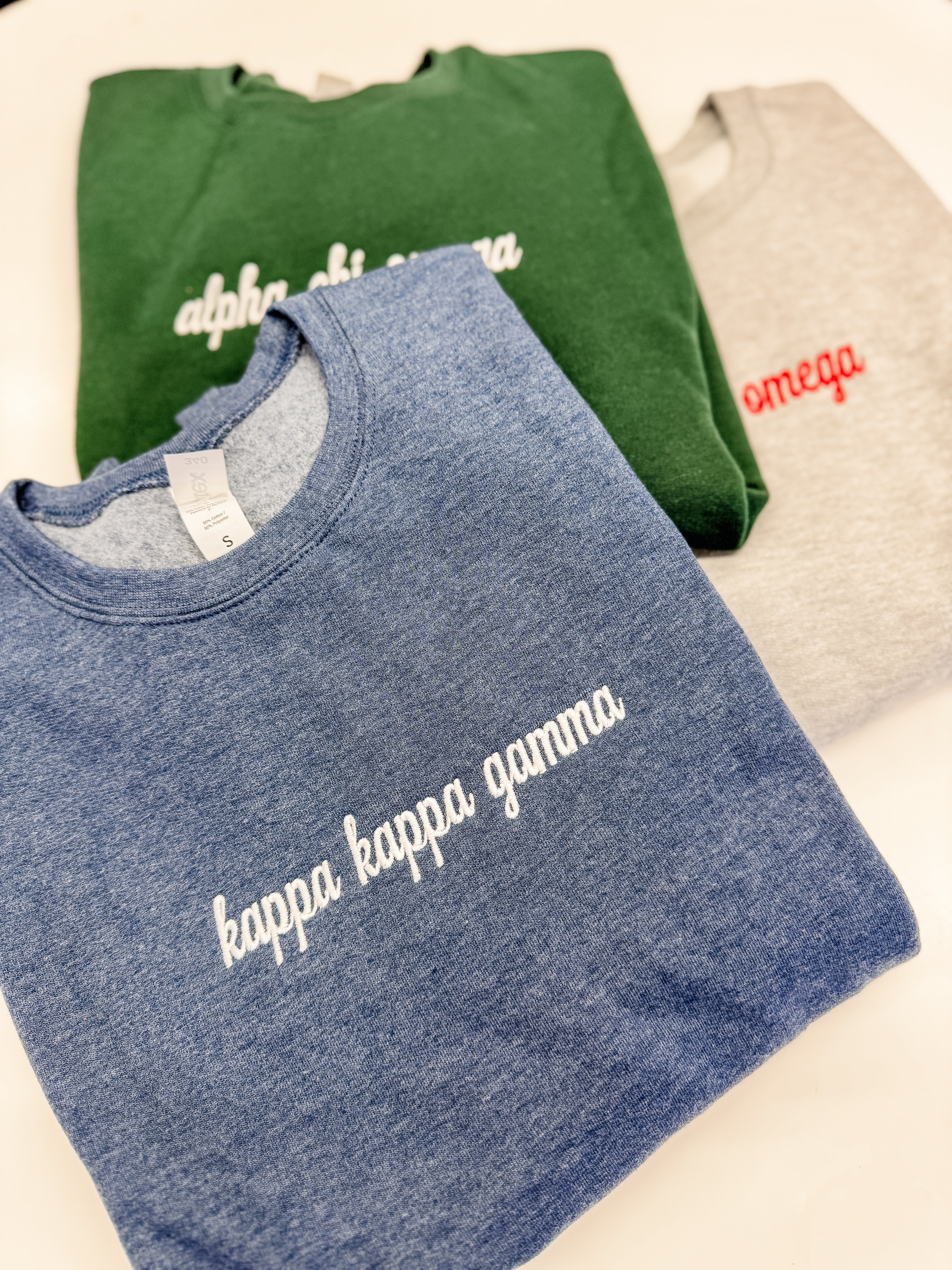 Traditional, classy, and embroidered - the perfect combination! This true-to-size crewneck sweatshirt is a must for every sorority girl's closet!