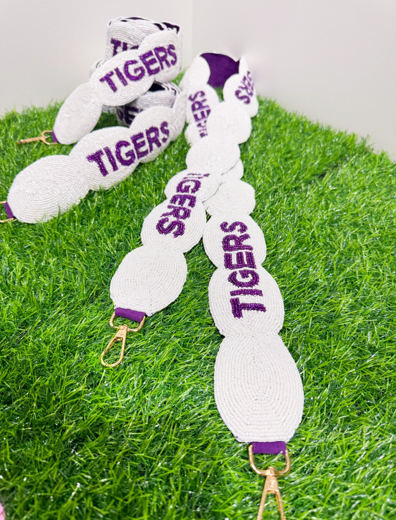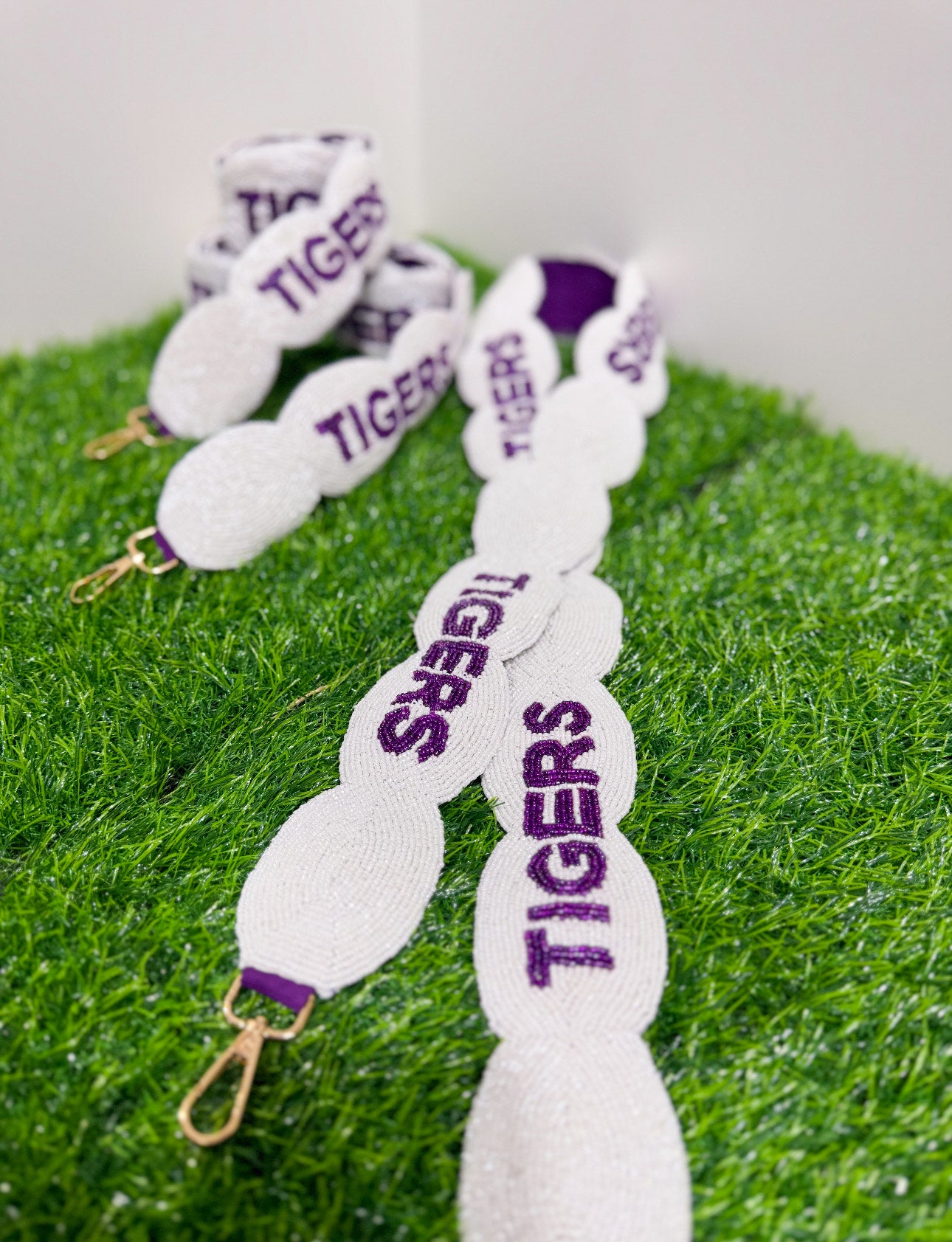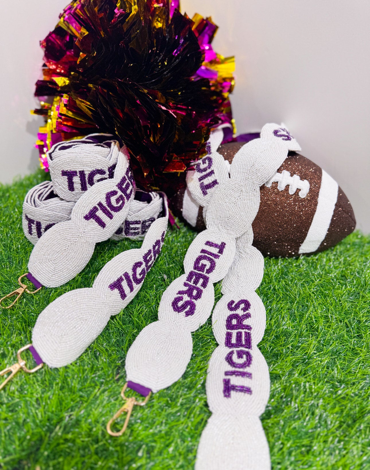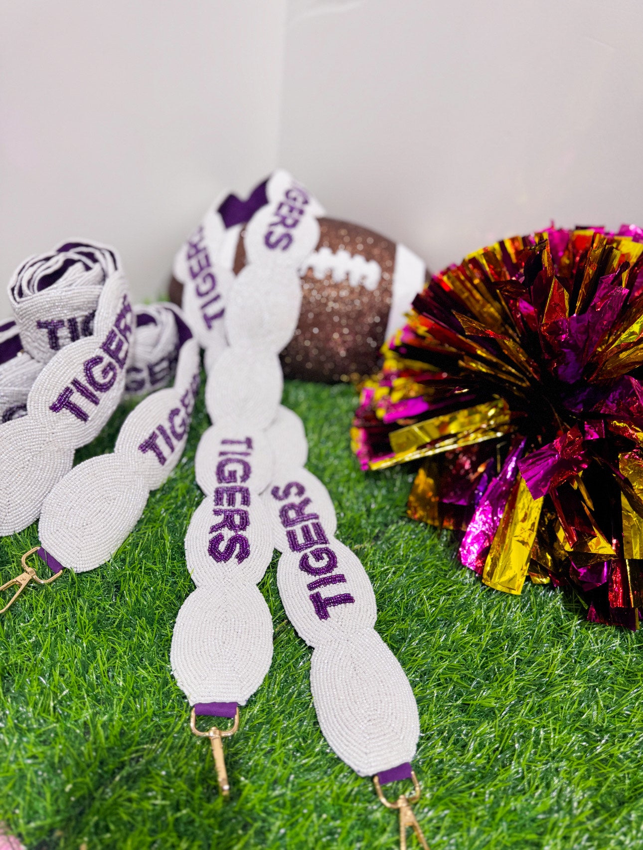 This is the perfect game day strap to add to your clear purse! OR hook it to a standard bag for a theme party or girls night! All straps have hooks at both ends and are hand-beaded for the best quality.