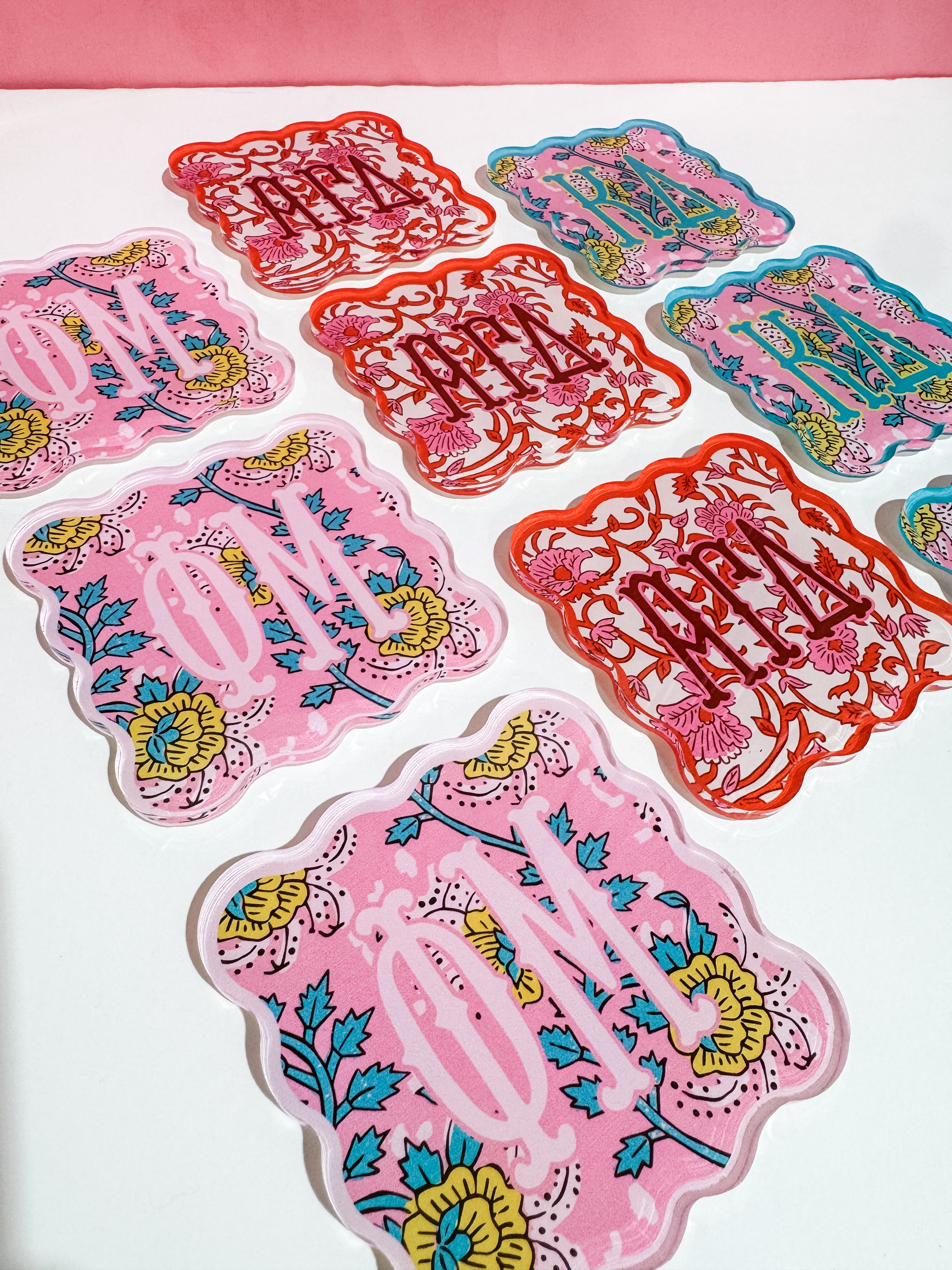 Add a personal touch to your space with these hand-drawn sorority coasters. Each coaster features artistic illustrations that celebrate your chapter’s spirit and tradition. Perfect for dorms, apartments, or big/little gifts, these coasters are both functional and decorative—keeping your surfaces safe while showing off your sisterhood in style.