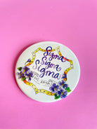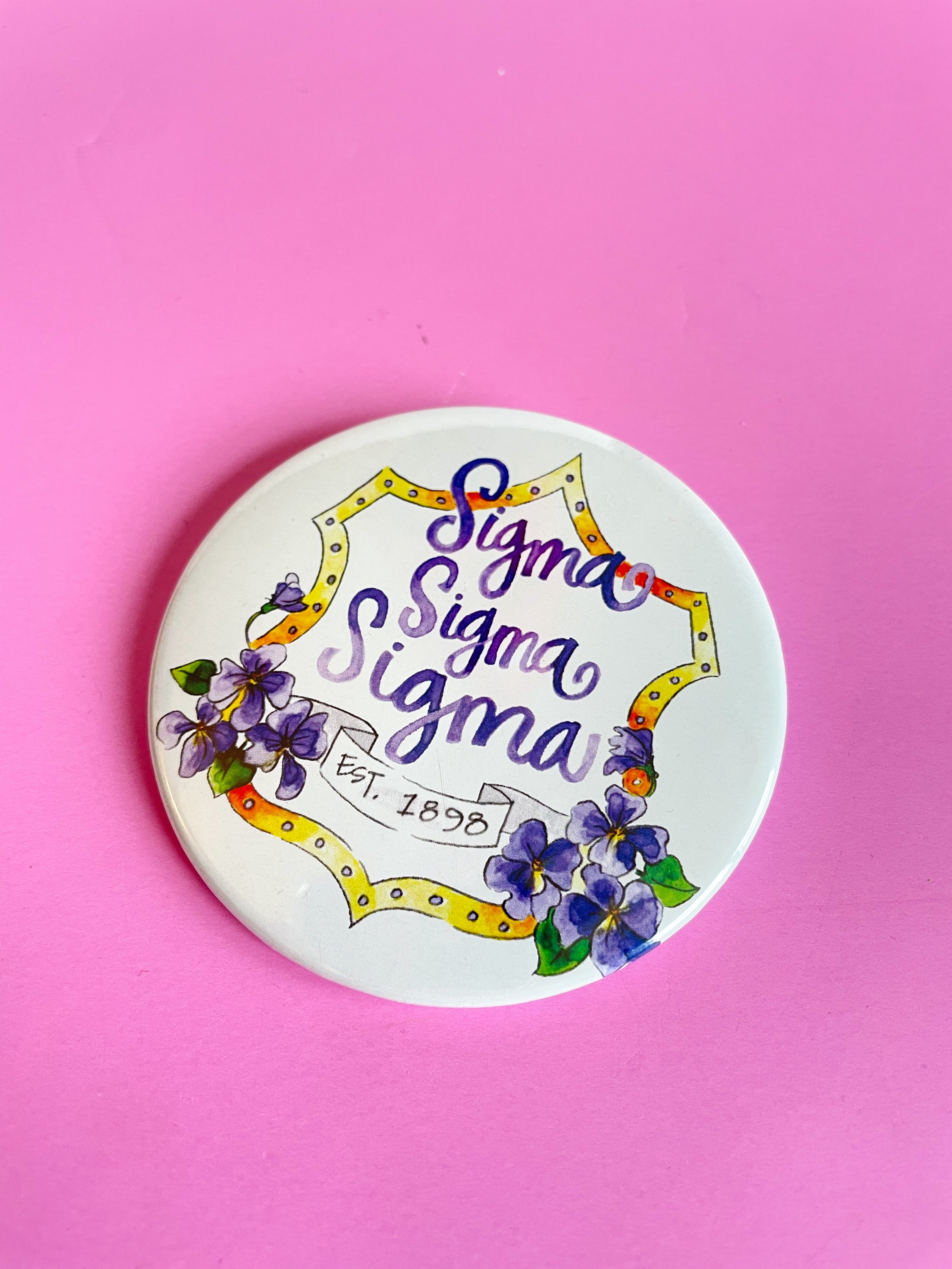 Hand-painted by the talented Emily Welch of Magnolia Creative, this 3” button is a beautiful addition to your collection!