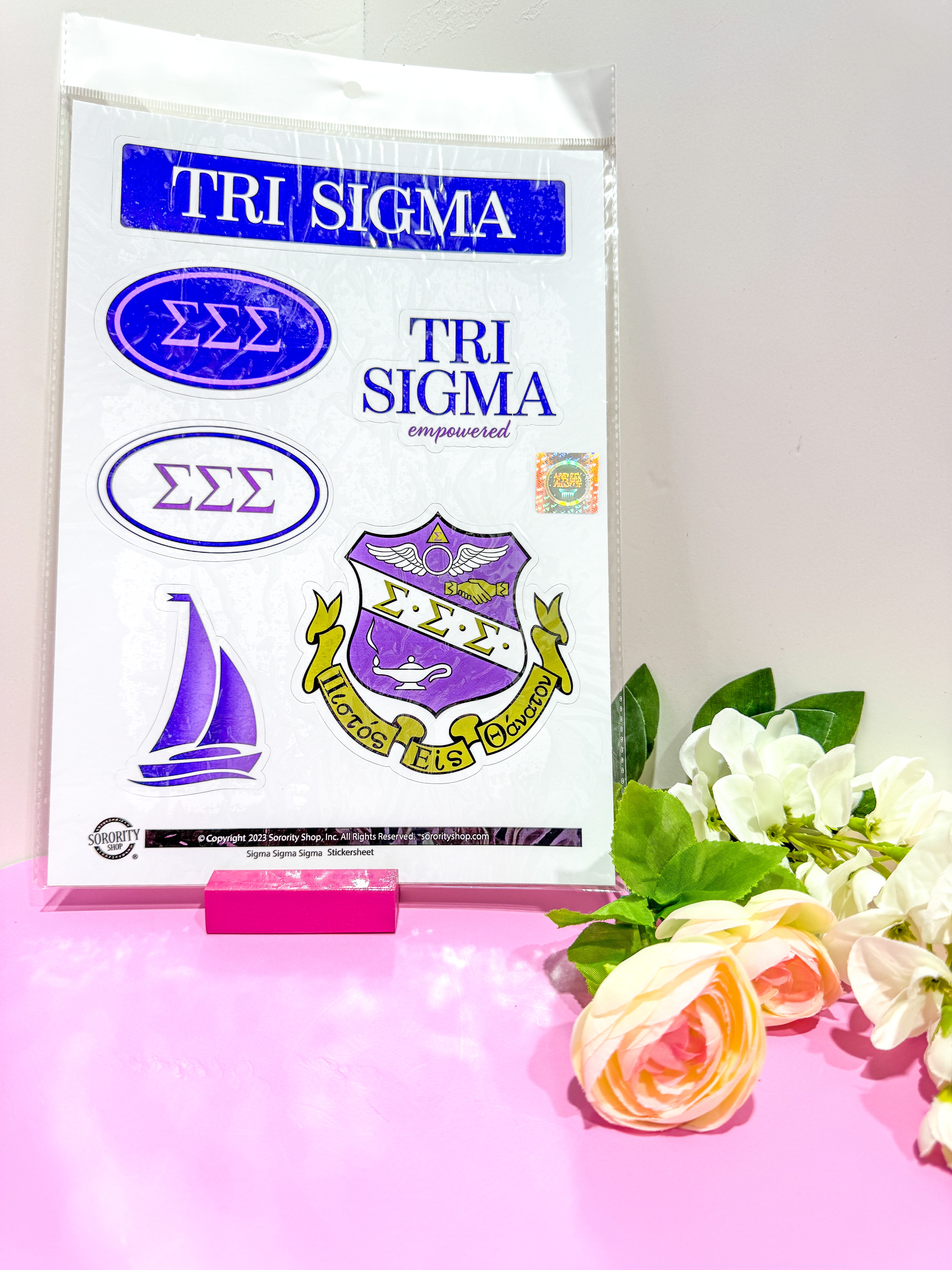 Each sheet contains 10 stickers! Printed on sturdy vinyl, they are easily removed or repositioned leaving NO STICKY RESIDUE! These stickers are the perfect way to show your sorority spirit - display them on a notebook, computer, or almost any clean dry surface, the possibilities are endless! Our officially licensed stickers make great gifts for sisters and are great to stock up on for special events or rush week. 12” x 8.5” sheet, 10 stickers.