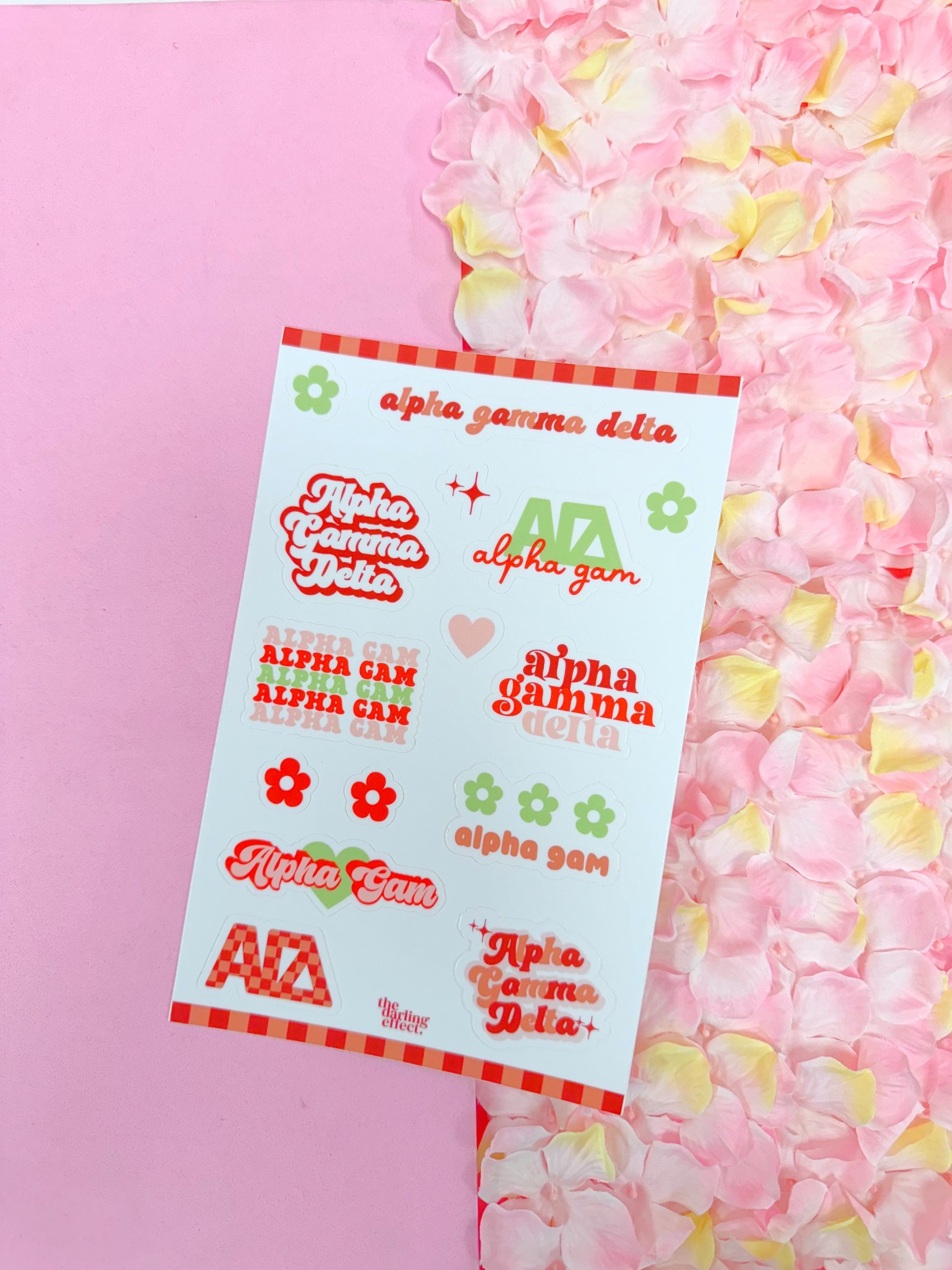 Show your sorority love with these cute sorority stickers! They are the perfect accessory for your laptop, water bottle and notebook! The sheet measures 8.5x5.5" with 9 sorority specific stickers and a total of 14 stickers per sheet!