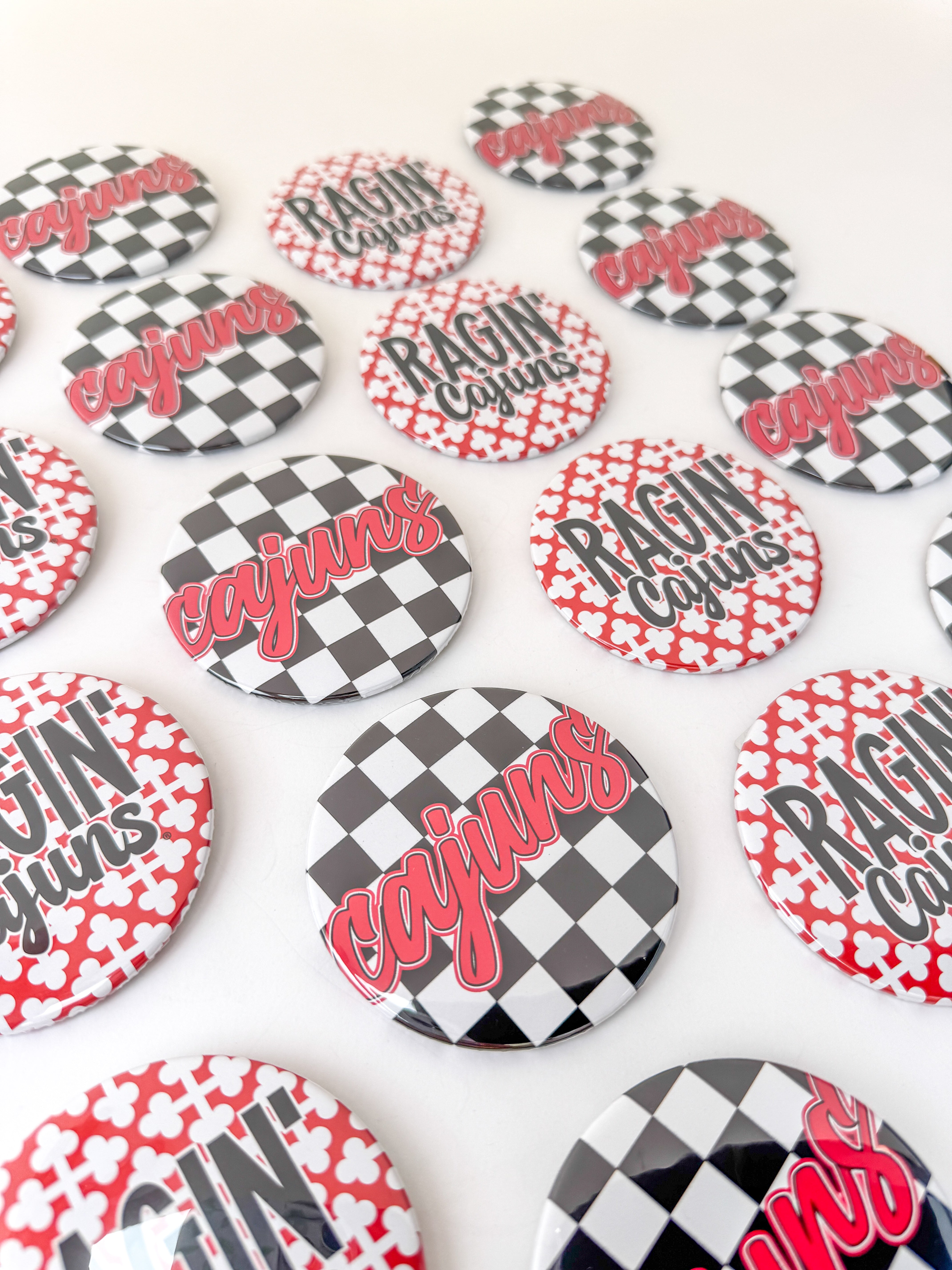 3” pin back button, designed and printed by Rush Greek Gifts!