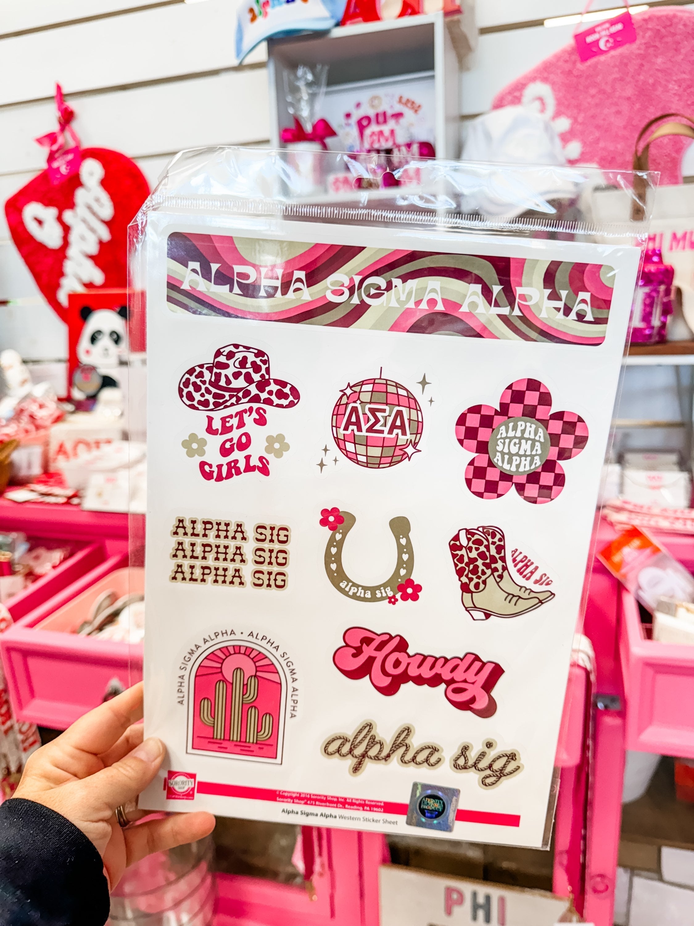 Each sheet contains 10 stickers! Printed on sturdy vinyl, they are easily removed or repositioned leaving NO STICKY RESIDUE! Our officially licensed stickers make great gifts for sisters and are great to stock up on for special events or rush week. 12” x 8.5” sheet, 10 stickers.