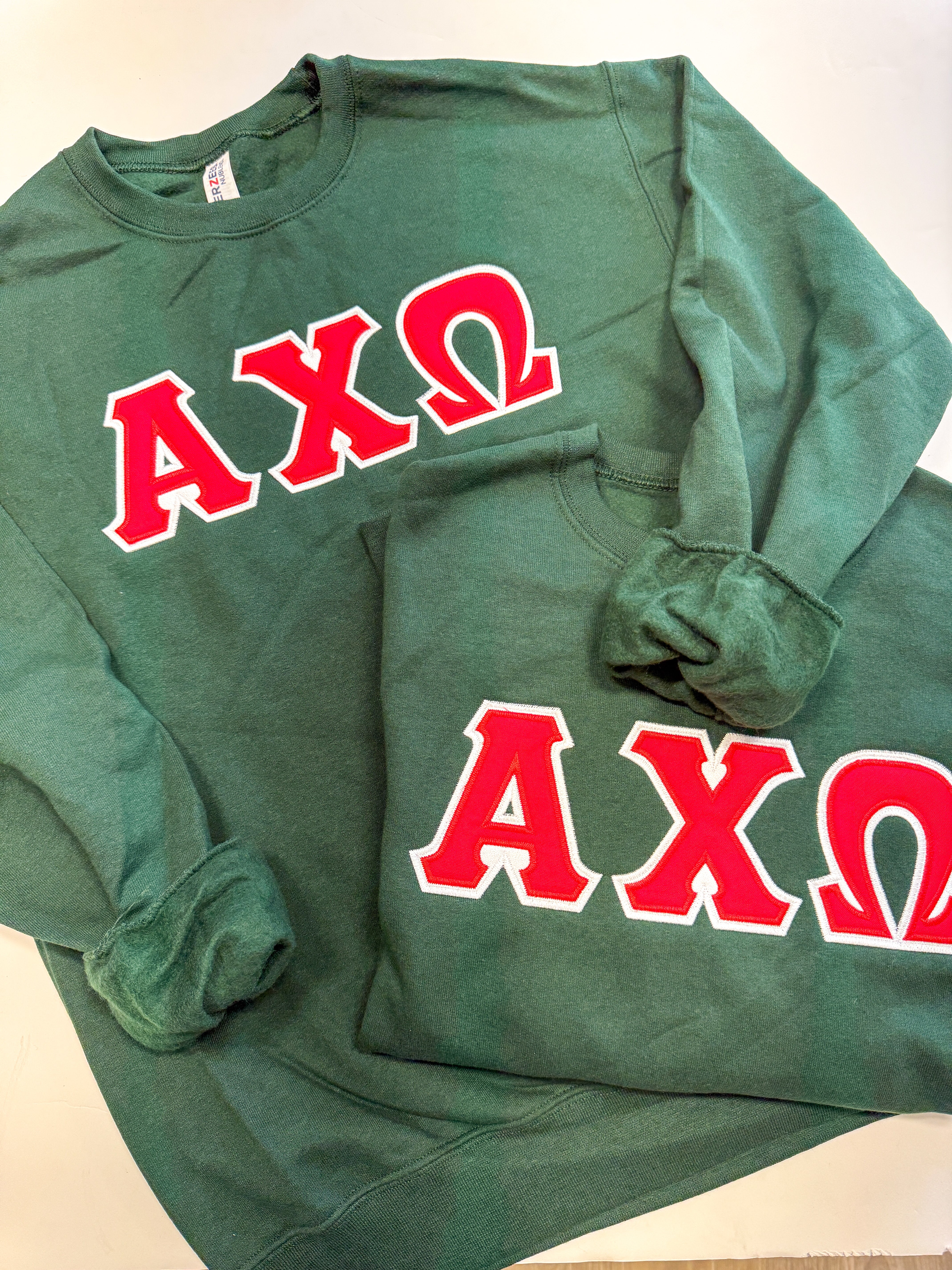 Show off your letters in our Alpha Chi Omega double layer stitched letter sweatshirt!