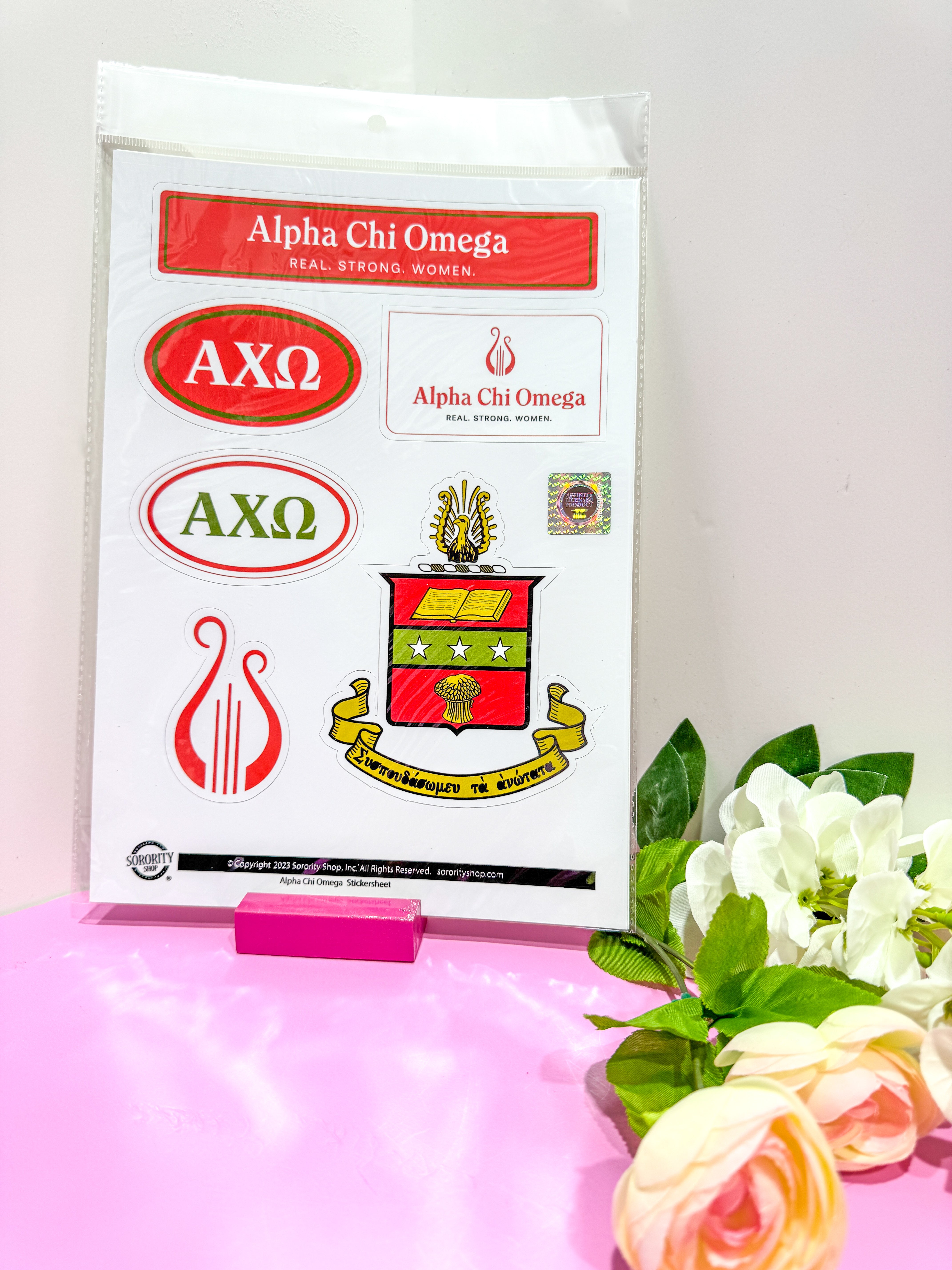 Each sheet contains 10 stickers! Printed on sturdy vinyl, they are easily removed or repositioned leaving NO STICKY RESIDUE! These stickers are the perfect way to show your sorority spirit - display them on a notebook, computer, or almost any clean dry surface, the possibilities are endless! Our officially licensed stickers make great gifts for sisters and are great to stock up on for special events or rush week. 12” x 8.5” sheet, 10 stickers.